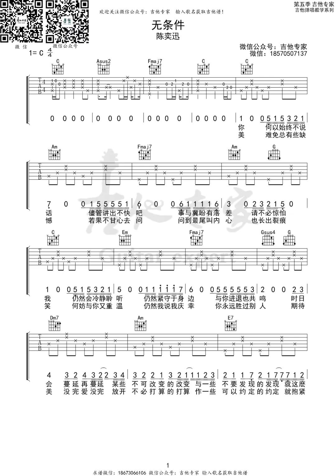 《陈奕迅《无条件吉他谱》(C调)》内容来自于互联网,不能保证内容的准确性与完整性,仅供学习交流欣赏,请勿用于其它用途,内容版权归原作者及来源网站所有,如有侵犯到您的权益请来信告知,我们将及时删除。
