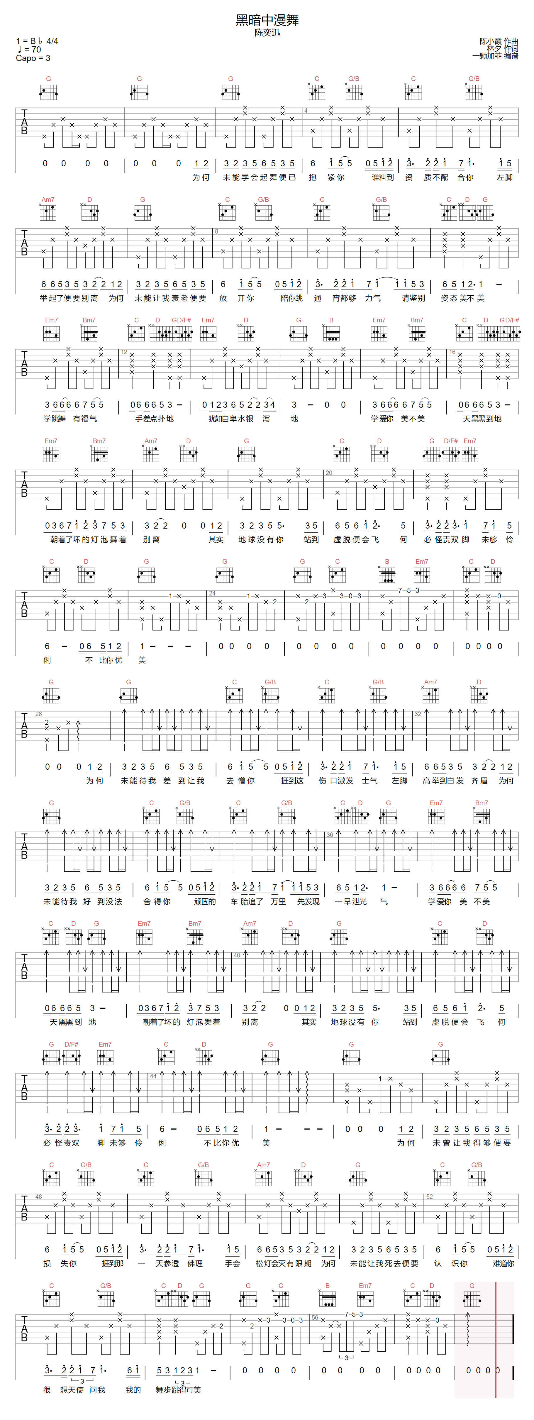 《陈奕迅《黑暗中漫舞吉他谱》(G调)》内容来自于互联网,不能保证内容的准确性与完整性,仅供学习交流欣赏,请勿用于其它用途,内容版权归原作者及来源网站所有,如有侵犯到您的权益请来信告知,我们将及时删除。
