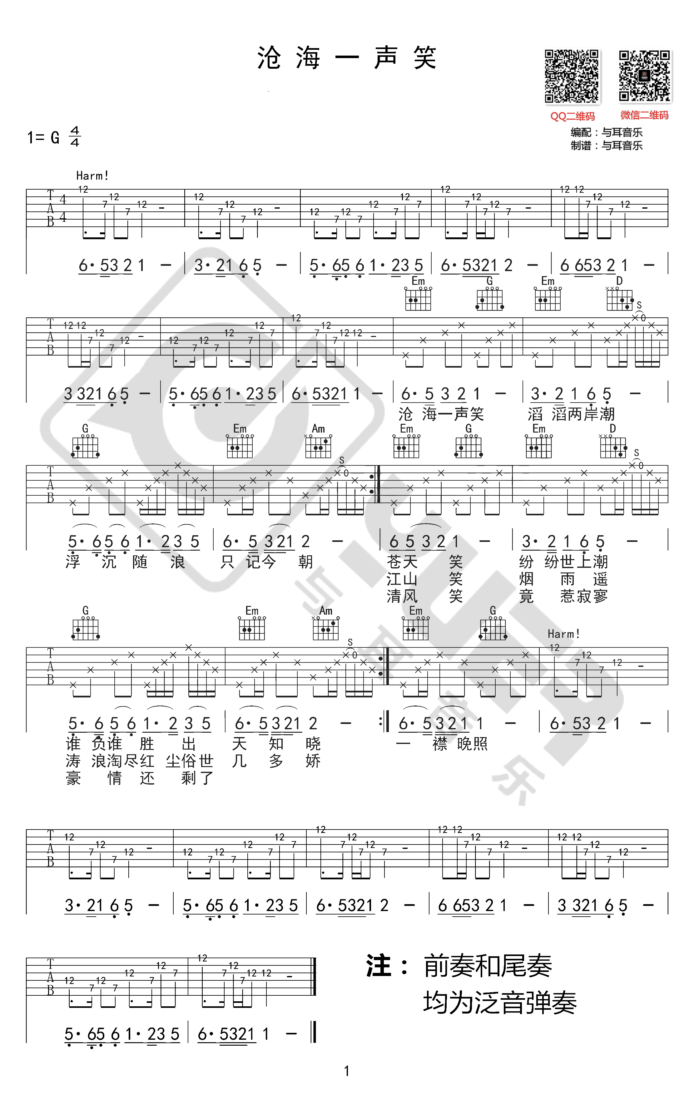 《黄霑《沧海一声笑吉他谱》(G调)》内容来自于互联网,不能保证内容的准确性与完整性,仅供学习交流欣赏,请勿用于其它用途,内容版权归原作者及来源网站所有,如有侵犯到您的权益请来信告知,我们将及时删除。