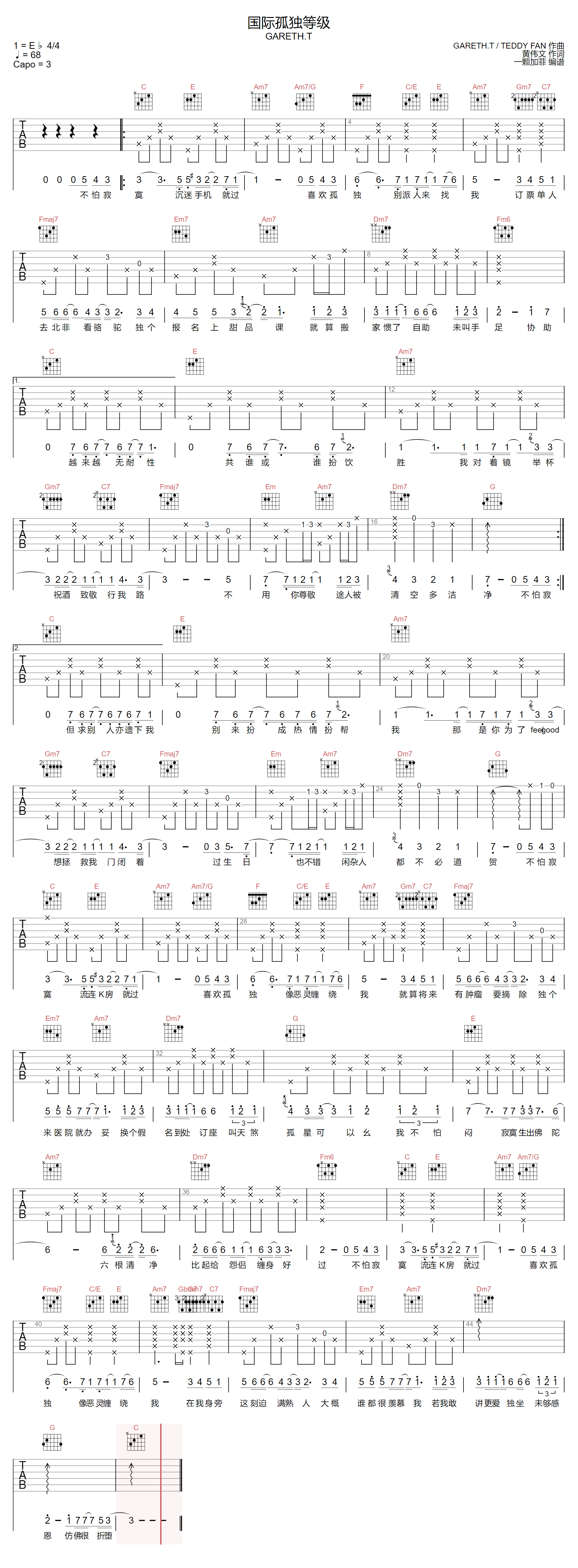 《GARETH.T《国际孤独等级吉他谱》(C调)》内容来自于互联网,不能保证内容的准确性与完整性,仅供学习交流欣赏,请勿用于其它用途,内容版权归原作者及来源网站所有,如有侵犯到您的权益请来信告知,我们将及时删除。