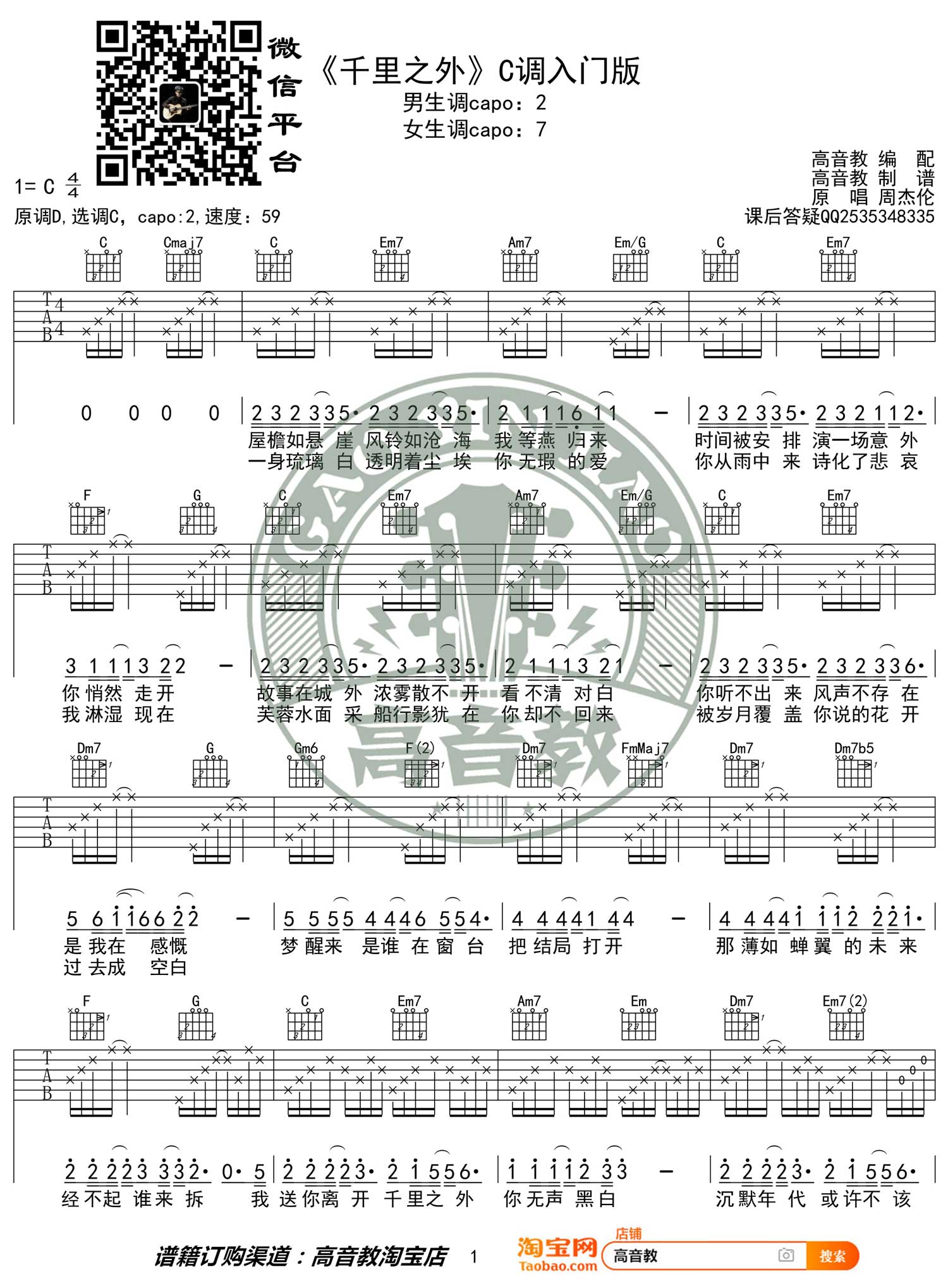 《周杰伦/费玉清《千里之外吉他谱》(G调)》内容来自于互联网,不能保证内容的准确性与完整性,仅供学习交流欣赏,请勿用于其它用途,内容版权归原作者及来源网站所有,如有侵犯到您的权益请来信告知,我们将及时删除。