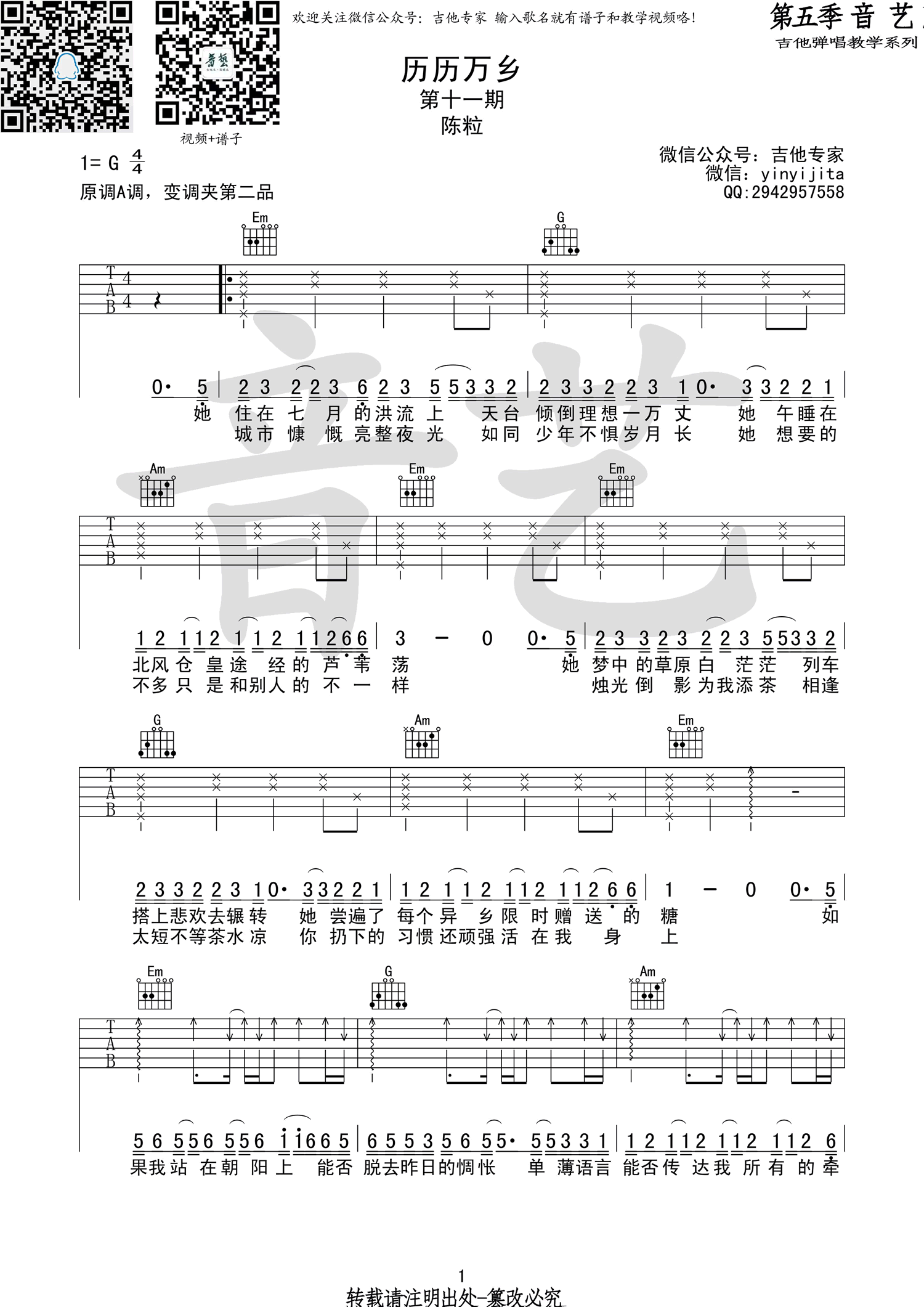 《陈粒《历历万乡吉他谱》(C调)》内容来自于互联网,不能保证内容的准确性与完整性,仅供学习交流欣赏,请勿用于其它用途,内容版权归原作者及来源网站所有,如有侵犯到您的权益请来信告知,我们将及时删除。