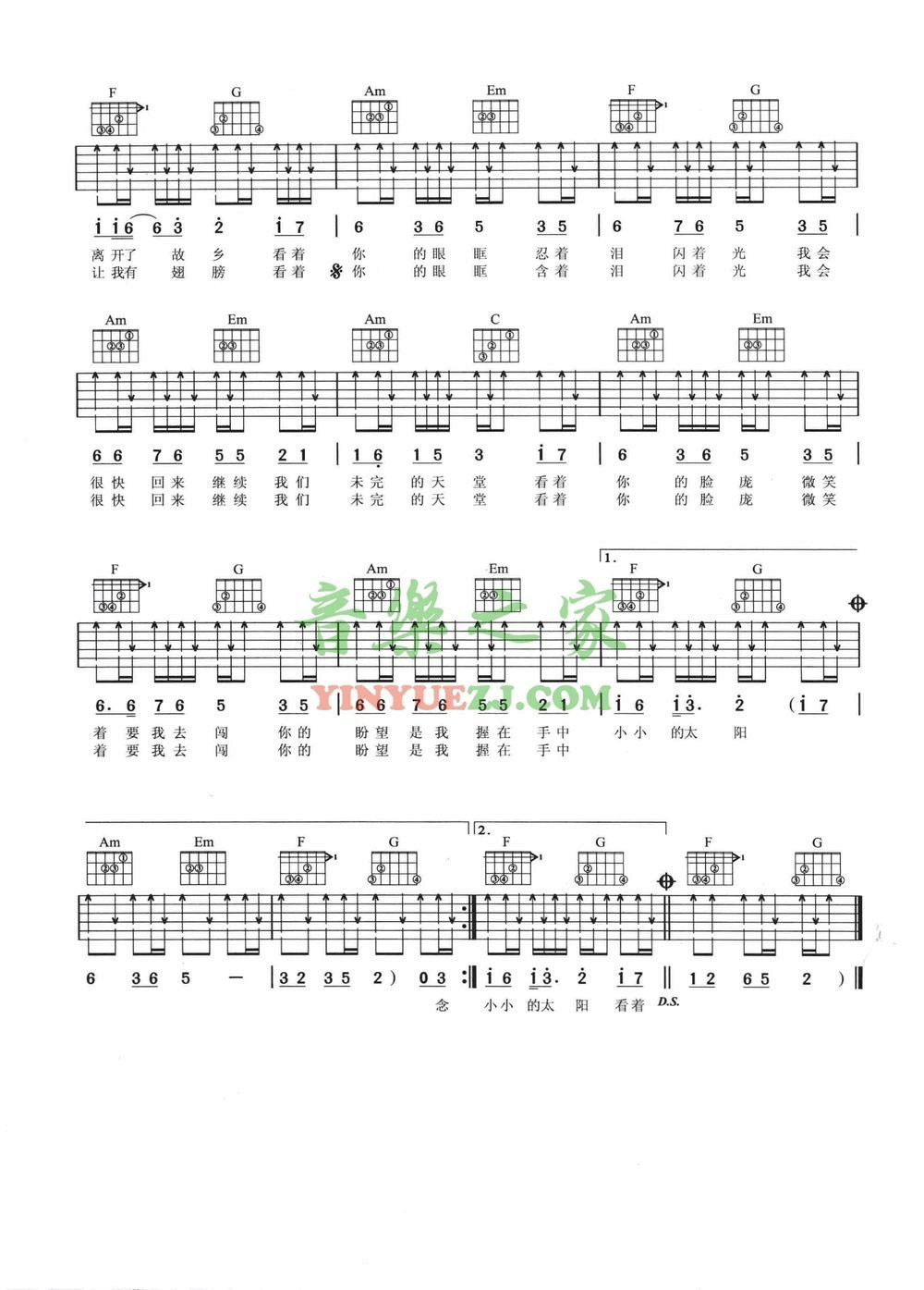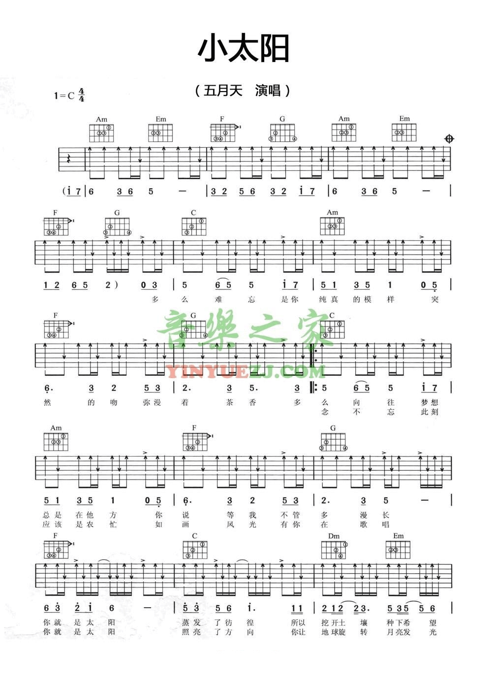 《五月天《小太阳吉他谱》(G调)》内容来自于互联网,不能保证内容的准确性与完整性,仅供学习交流欣赏,请勿用于其它用途,内容版权归原作者及来源网站所有,如有侵犯到您的权益请来信告知,我们将及时删除。