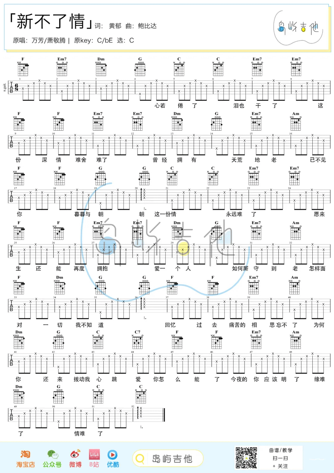《萧敬腾/万芳《新不了情吉他谱》(G调)》内容来自于互联网,不能保证内容的准确性与完整性,仅供学习交流欣赏,请勿用于其它用途,内容版权归原作者及来源网站所有,如有侵犯到您的权益请来信告知,我们将及时删除。