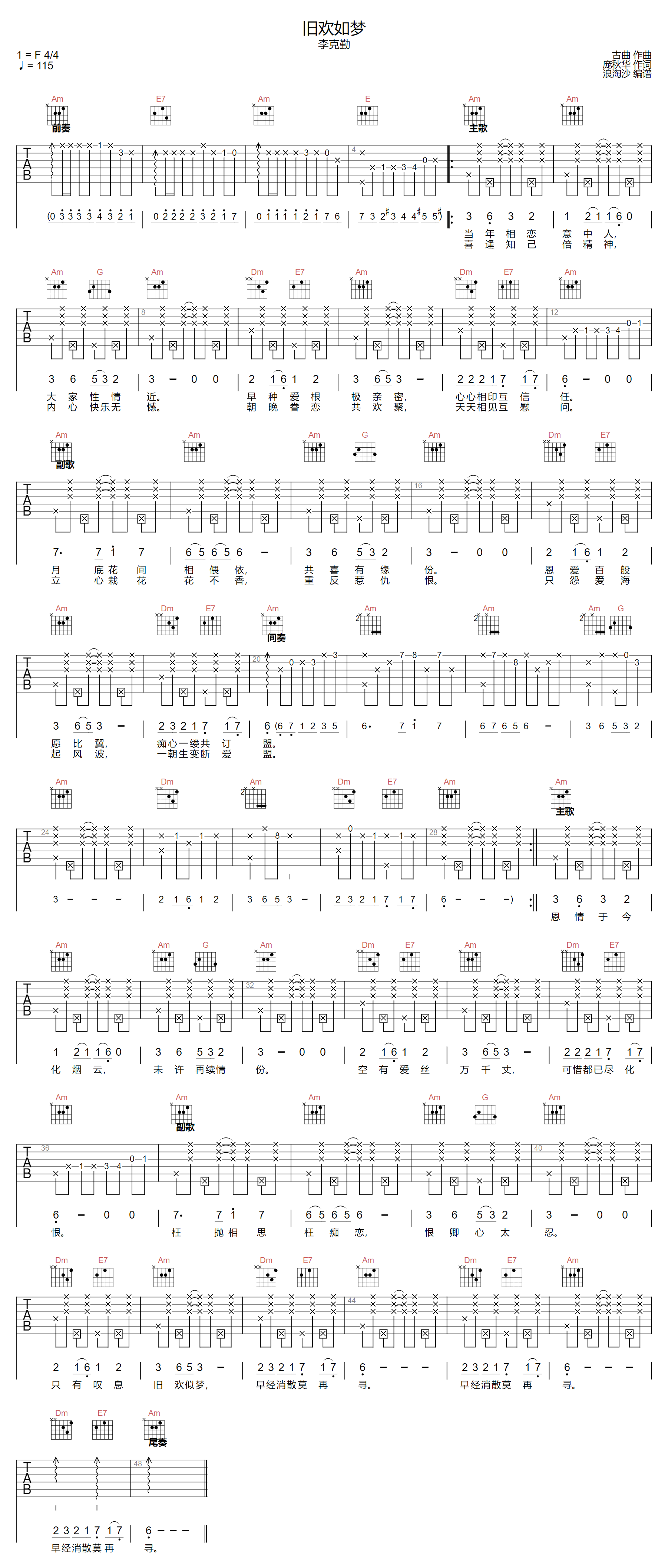 《李克勤《旧欢如梦吉他谱》(C调)》内容来自于互联网,不能保证内容的准确性与完整性,仅供学习交流欣赏,请勿用于其它用途,内容版权归原作者及来源网站所有,如有侵犯到您的权益请来信告知,我们将及时删除。