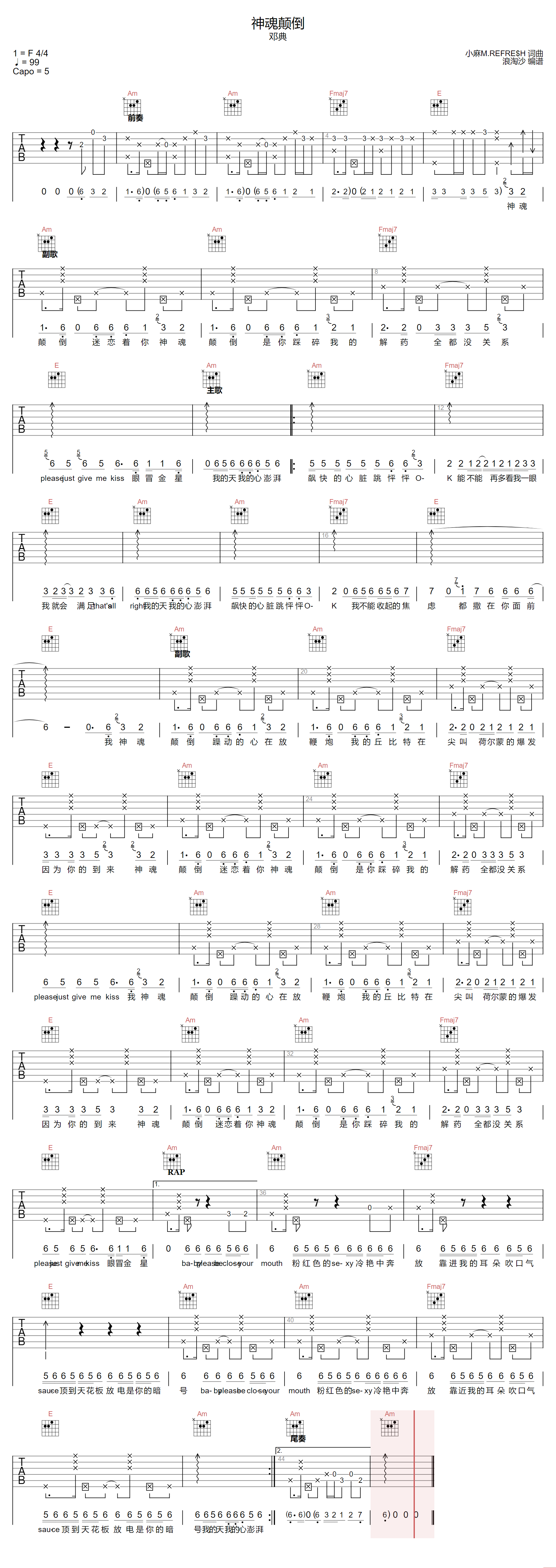《邓典《神魂颠倒吉他谱》(C调)》内容来自于互联网,不能保证内容的准确性与完整性,仅供学习交流欣赏,请勿用于其它用途,内容版权归原作者及来源网站所有,如有侵犯到您的权益请来信告知,我们将及时删除。