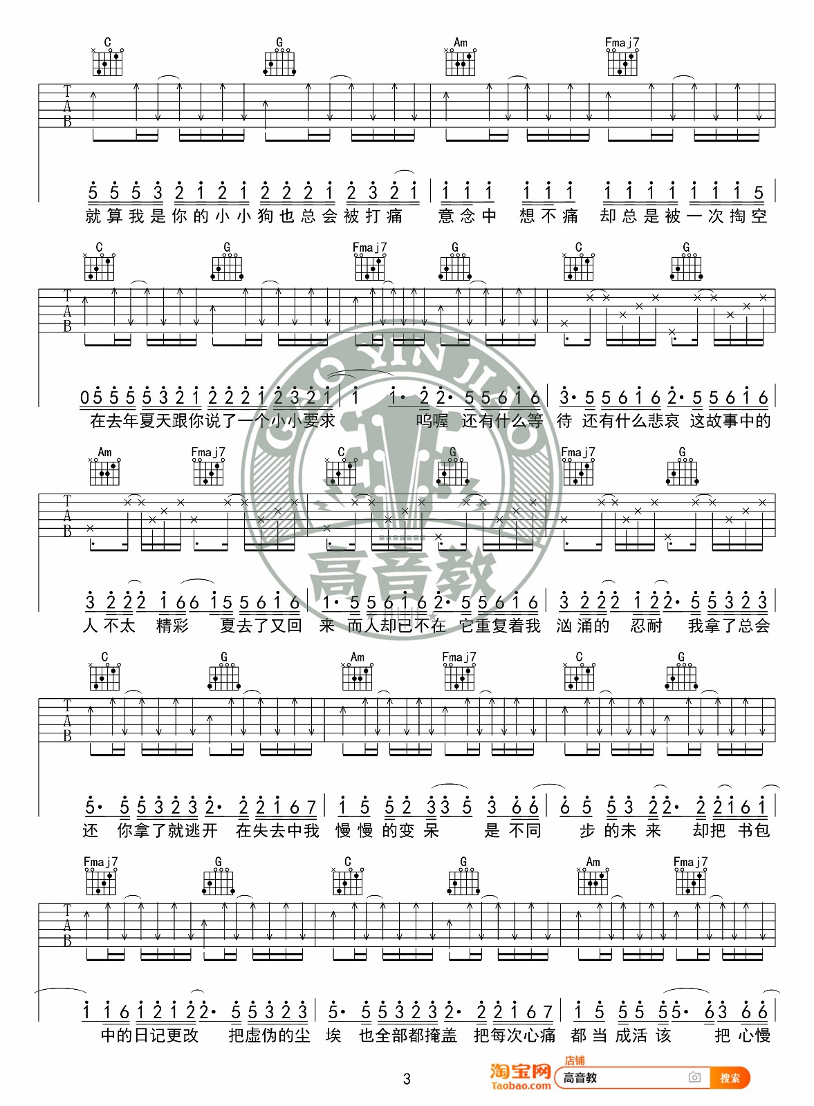 《王大毛《去年夏天吉他谱》(G调)》内容来自于互联网,不能保证内容的准确性与完整性,仅供学习交流欣赏,请勿用于其它用途,内容版权归原作者及来源网站所有,如有侵犯到您的权益请来信告知,我们将及时删除。