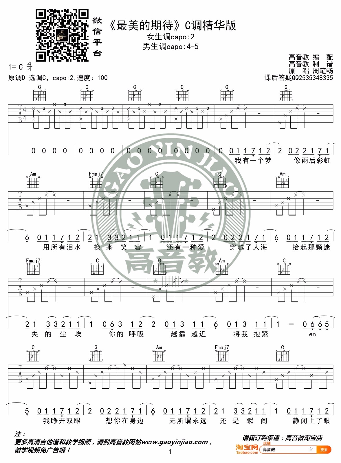 《周笔畅《最美的期待吉他谱》(G调)》内容来自于互联网,不能保证内容的准确性与完整性,仅供学习交流欣赏,请勿用于其它用途,内容版权归原作者及来源网站所有,如有侵犯到您的权益请来信告知,我们将及时删除。