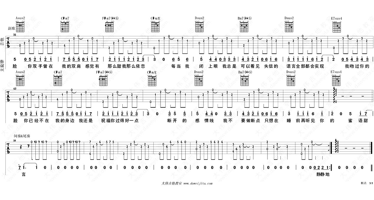《张敬轩《断点吉他谱》(G调)》内容来自于互联网,不能保证内容的准确性与完整性,仅供学习交流欣赏,请勿用于其它用途,内容版权归原作者及来源网站所有,如有侵犯到您的权益请来信告知,我们将及时删除。