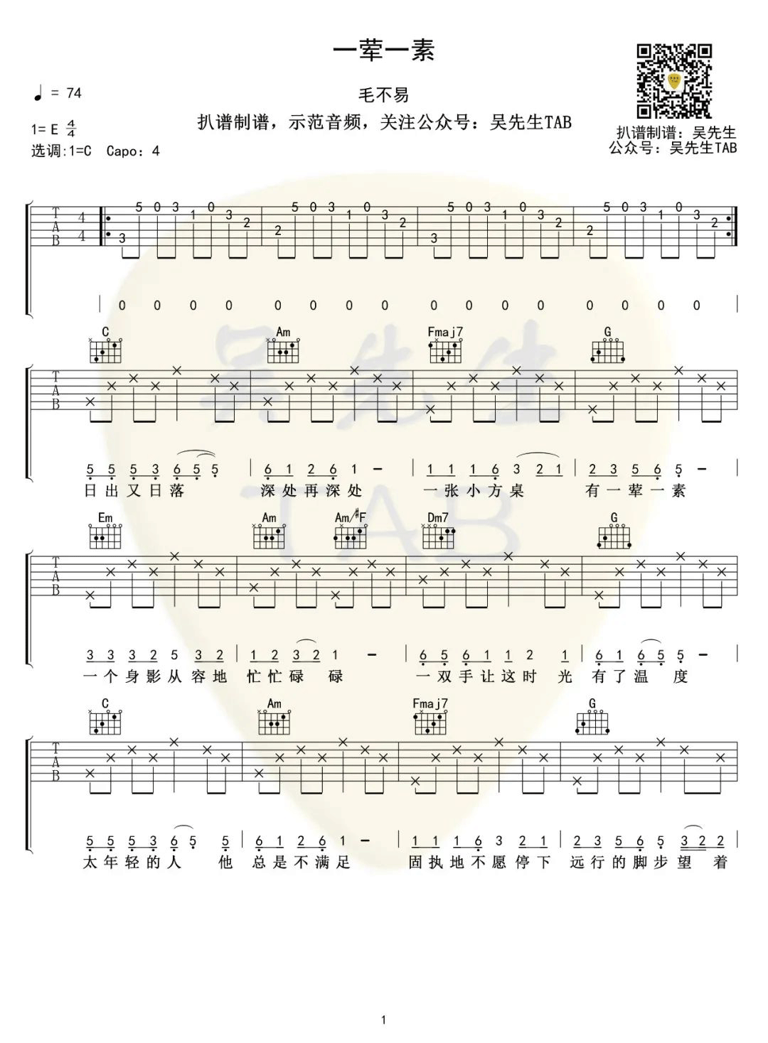 本文标题 《毛不易《一荤一素吉他谱》(G调)》,网址:https://www.21qupu.com/guitar/63793.html