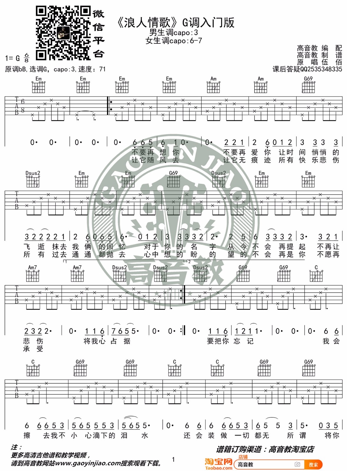 《伍佰《浪人情歌吉他谱》(C调)》内容来自于互联网,不能保证内容的准确性与完整性,仅供学习交流欣赏,请勿用于其它用途,内容版权归原作者及来源网站所有,如有侵犯到您的权益请来信告知,我们将及时删除。