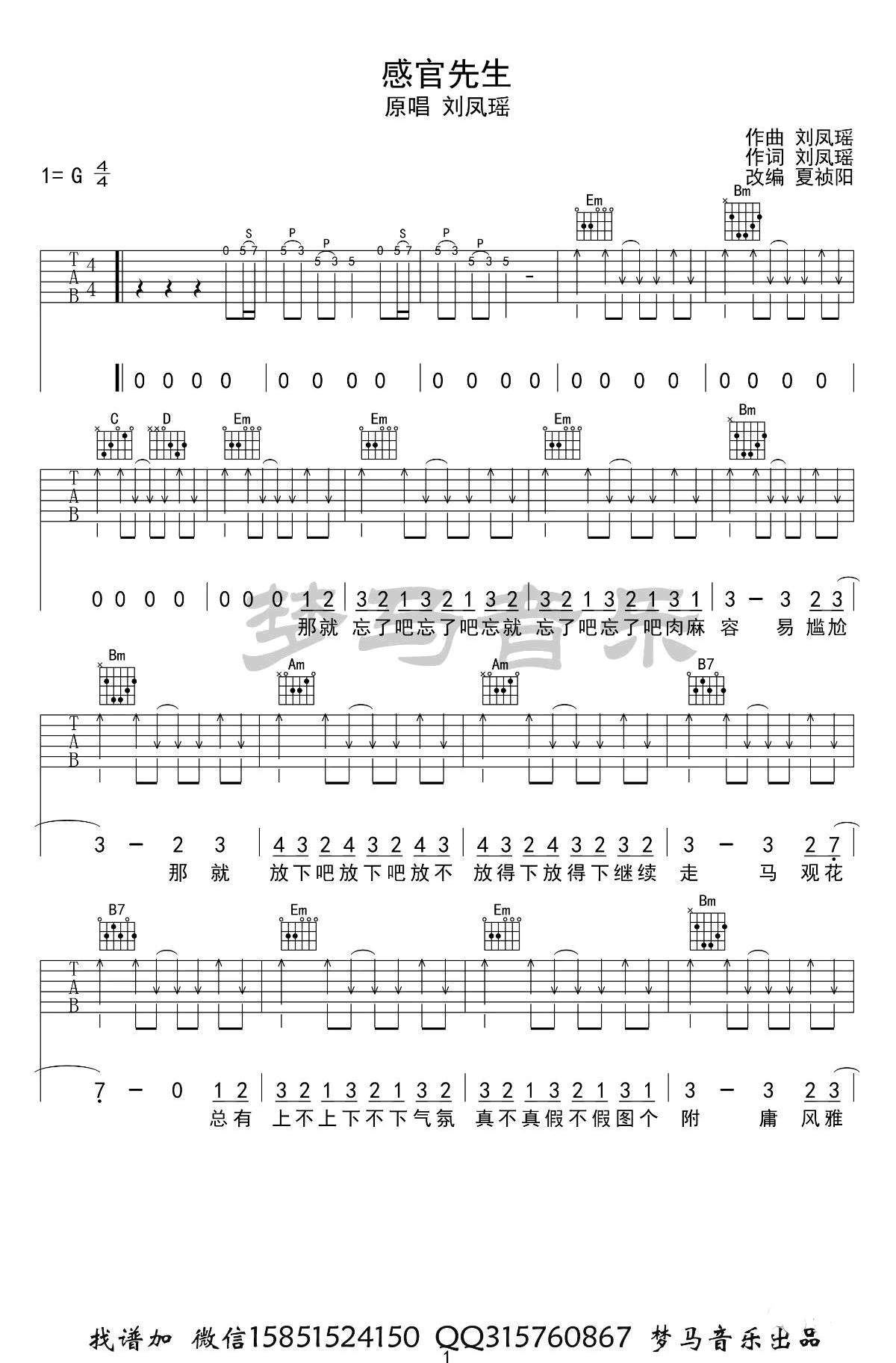 《刘凤瑶《感官先生吉他谱》(C调)》内容来自于互联网,不能保证内容的准确性与完整性,仅供学习交流欣赏,请勿用于其它用途,内容版权归原作者及来源网站所有,如有侵犯到您的权益请来信告知,我们将及时删除。