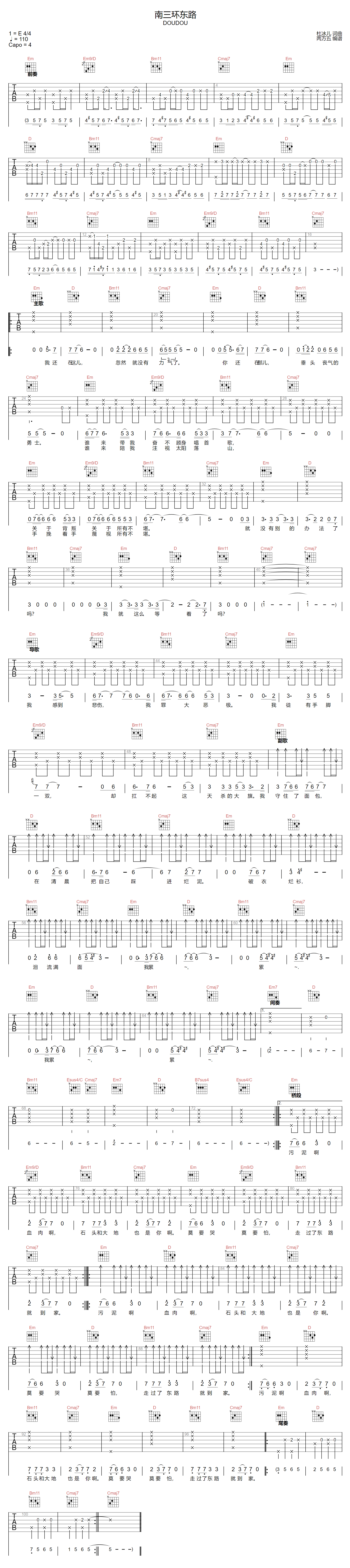 《DOUDOU《南三环东路吉他谱》(D调)》内容来自于互联网,不能保证内容的准确性与完整性,仅供学习交流欣赏,请勿用于其它用途,内容版权归原作者及来源网站所有,如有侵犯到您的权益请来信告知,我们将及时删除。