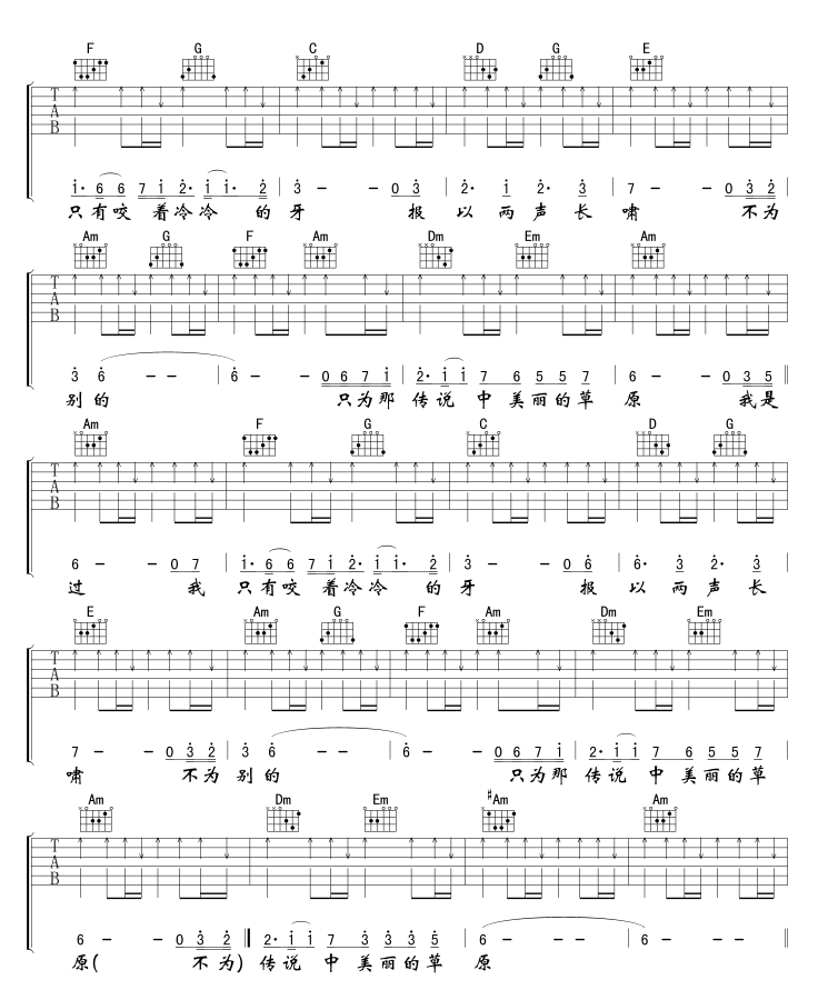 《齐秦《北方的狼吉他谱》(C调)》内容来自于互联网,不能保证内容的准确性与完整性,仅供学习交流欣赏,请勿用于其它用途,内容版权归原作者及来源网站所有,如有侵犯到您的权益请来信告知,我们将及时删除。