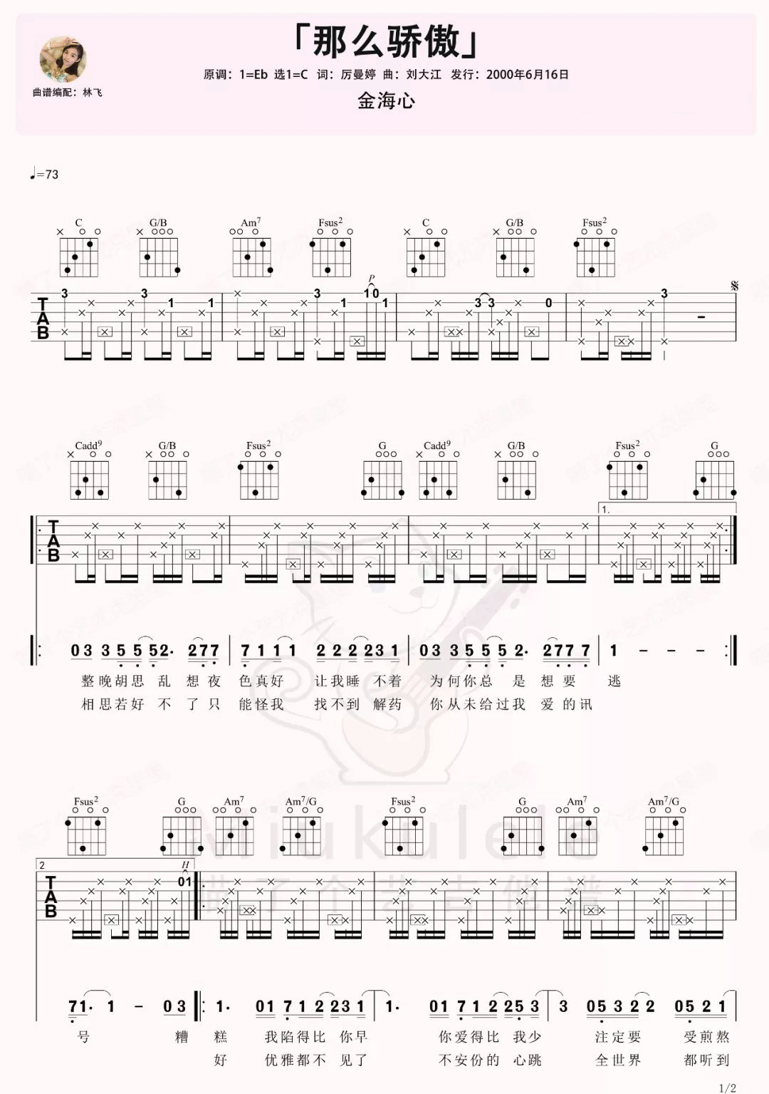 《那么骄傲》由金海心演唱,是一首C调男女对唱情歌。歌曲以激烈的情感表达恋人间的骄傲与倔强,旋律充满张力。弹奏时需使用变调夹夹3品,突出高音域,配合扫弦和切音技巧增强节奏感。其编配简洁有力,抖音神曲版更显流行特色,适合吉他弹唱,情感饱满且易于传播。