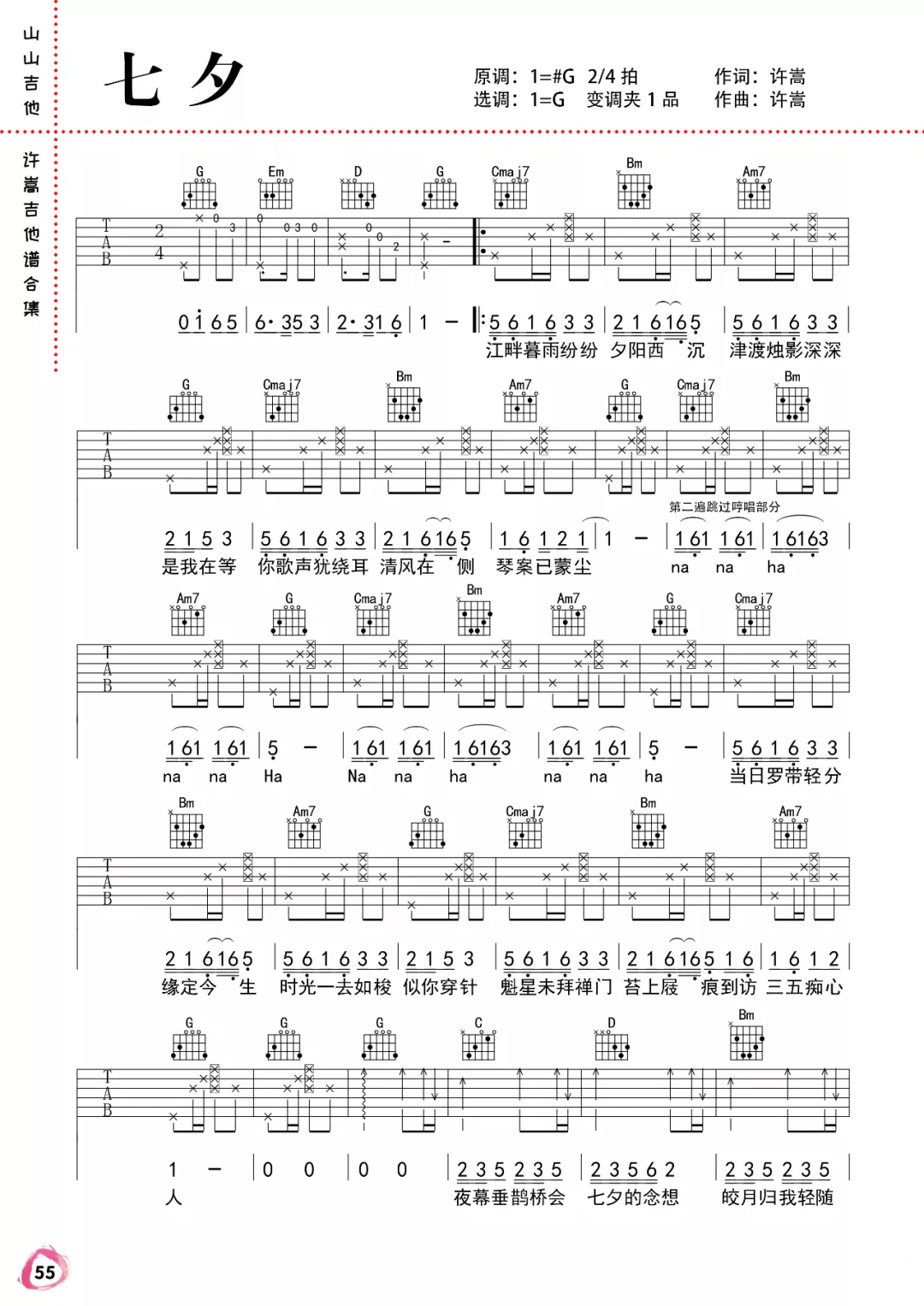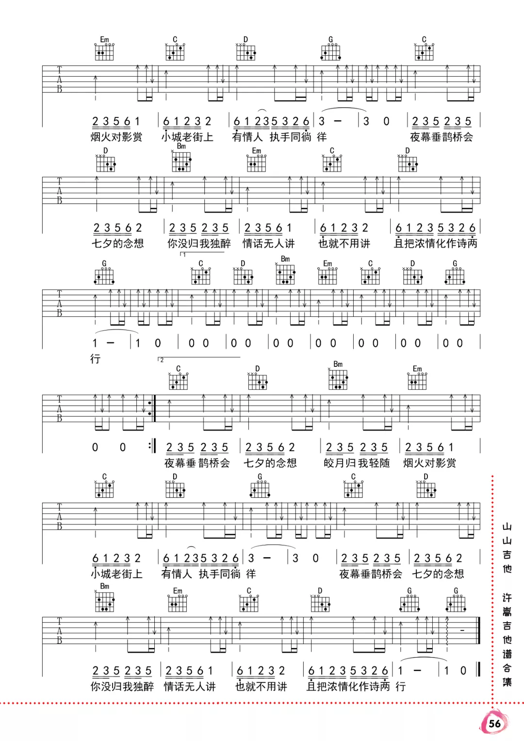 《许嵩《七夕吉他谱》(C调)》内容来自于互联网,不能保证内容的准确性与完整性,仅供学习交流欣赏,请勿用于其它用途,内容版权归原作者及来源网站所有,如有侵犯到您的权益请来信告知,我们将及时删除。