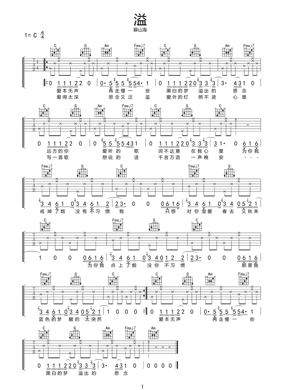 《蘇山海《溢吉他谱》(G调)》内容来自于互联网,不能保证内容的准确性与完整性,仅供学习交流欣赏,请勿用于其它用途,内容版权归原作者及来源网站所有,如有侵犯到您的权益请来信告知,我们将及时删除。