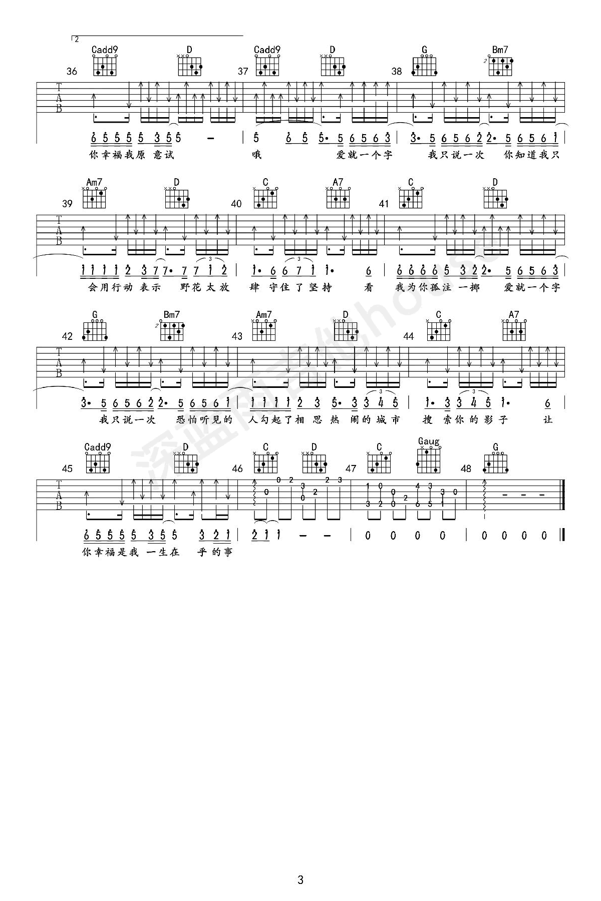 《张信哲《爱就一个字吉他谱》(G调)》内容来自于互联网,不能保证内容的准确性与完整性,仅供学习交流欣赏,请勿用于其它用途,内容版权归原作者及来源网站所有,如有侵犯到您的权益请来信告知,我们将及时删除。