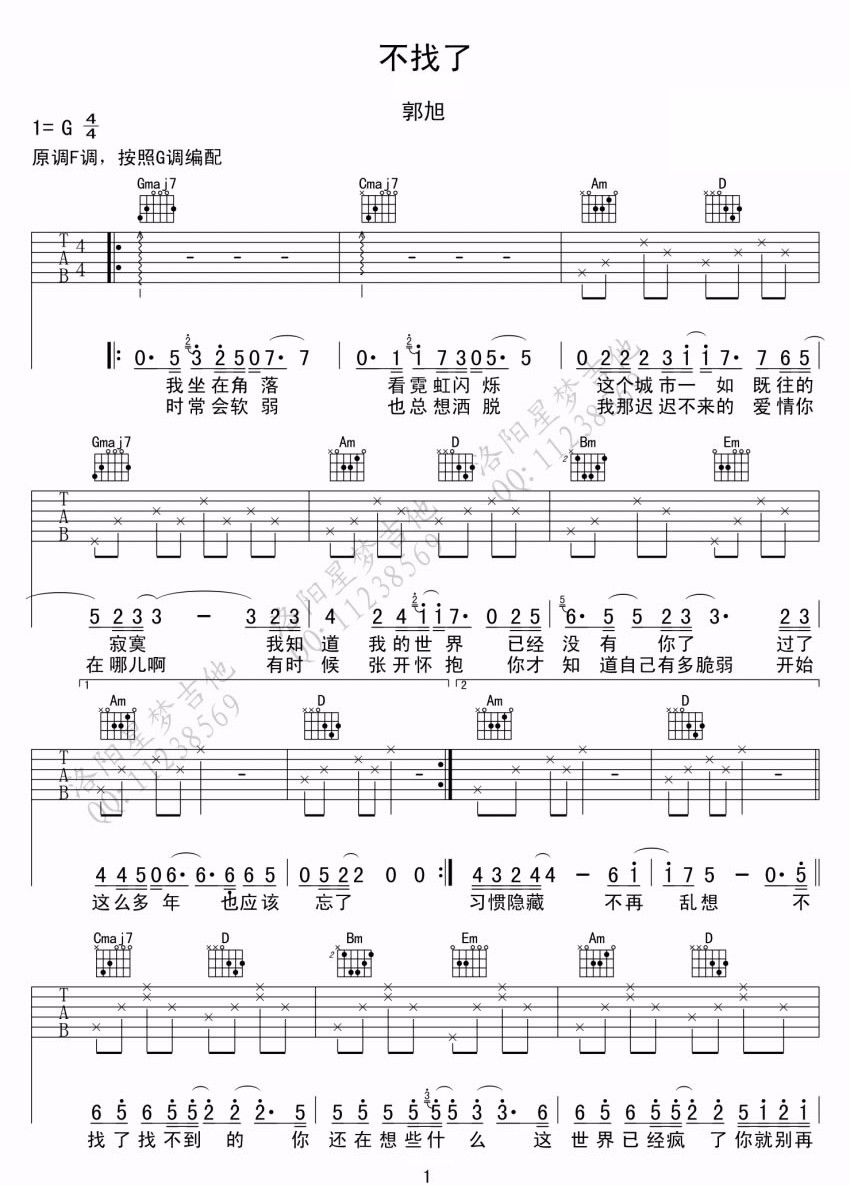 《郭旭《不找了吉他谱》(C调)》内容来自于互联网,不能保证内容的准确性与完整性,仅供学习交流欣赏,请勿用于其它用途,内容版权归原作者及来源网站所有,如有侵犯到您的权益请来信告知,我们将及时删除。