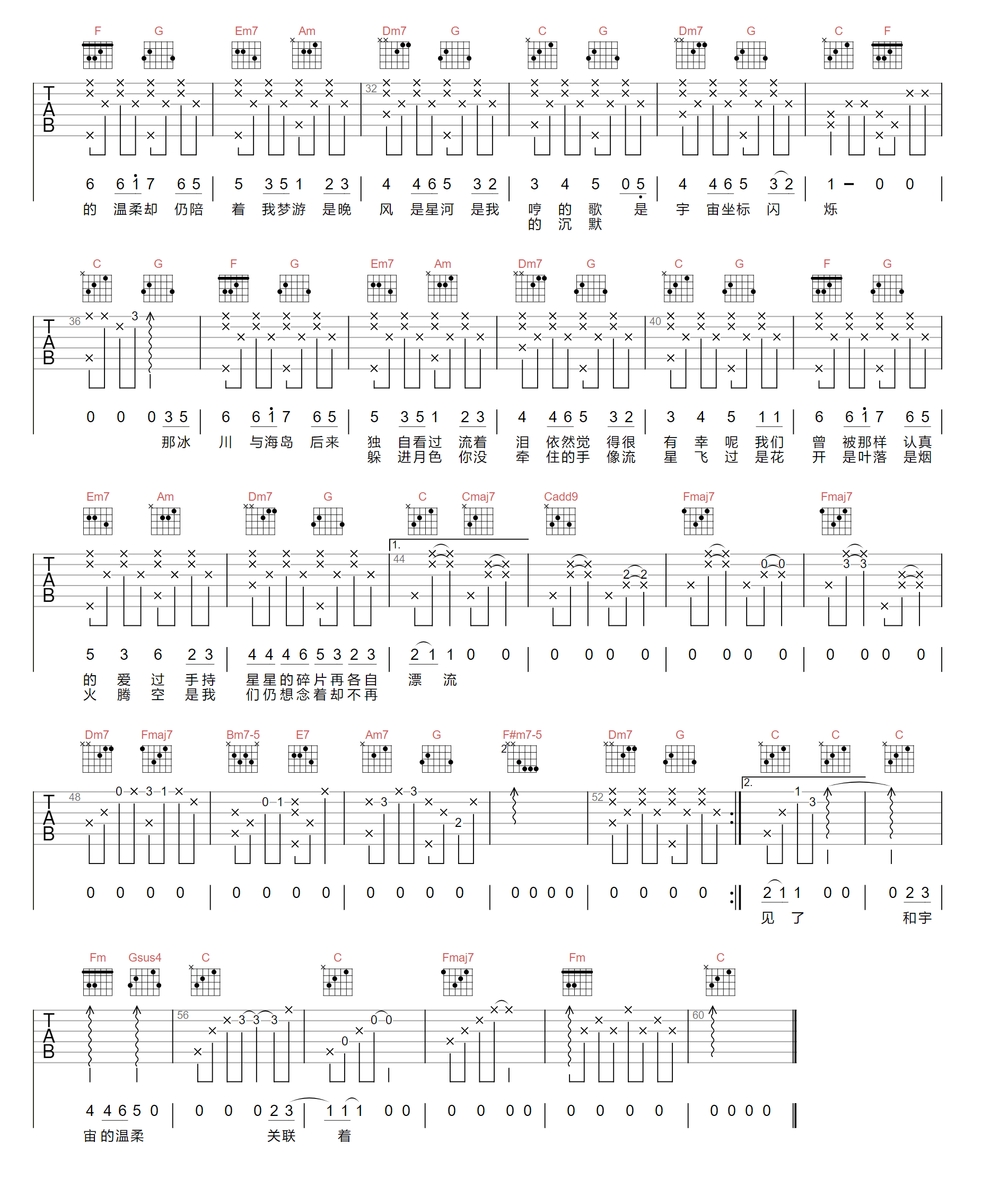 《房东的猫《和宇宙的温柔关联吉他谱》(E调)》内容来自于互联网,不能保证内容的准确性与完整性,仅供学习交流欣赏,请勿用于其它用途,内容版权归原作者及来源网站所有,如有侵犯到您的权益请来信告知,我们将及时删除。