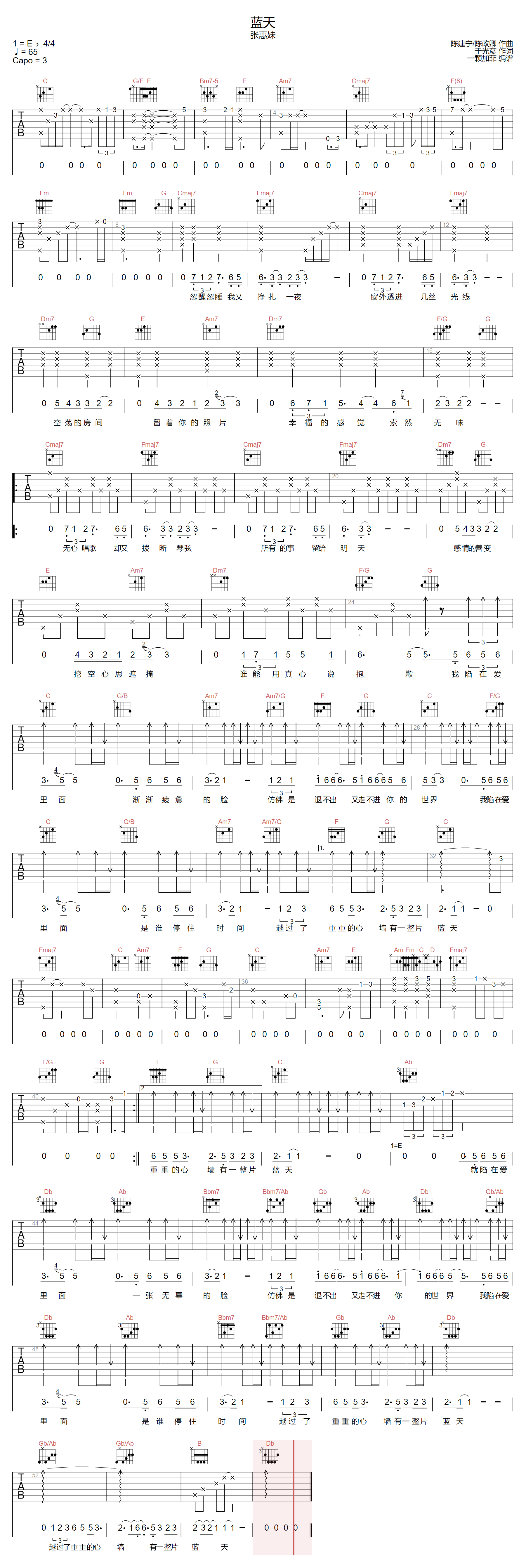 《张惠妹《蓝天吉他谱》(G调)》内容来自于互联网,不能保证内容的准确性与完整性,仅供学习交流欣赏,请勿用于其它用途,内容版权归原作者及来源网站所有,如有侵犯到您的权益请来信告知,我们将及时删除。