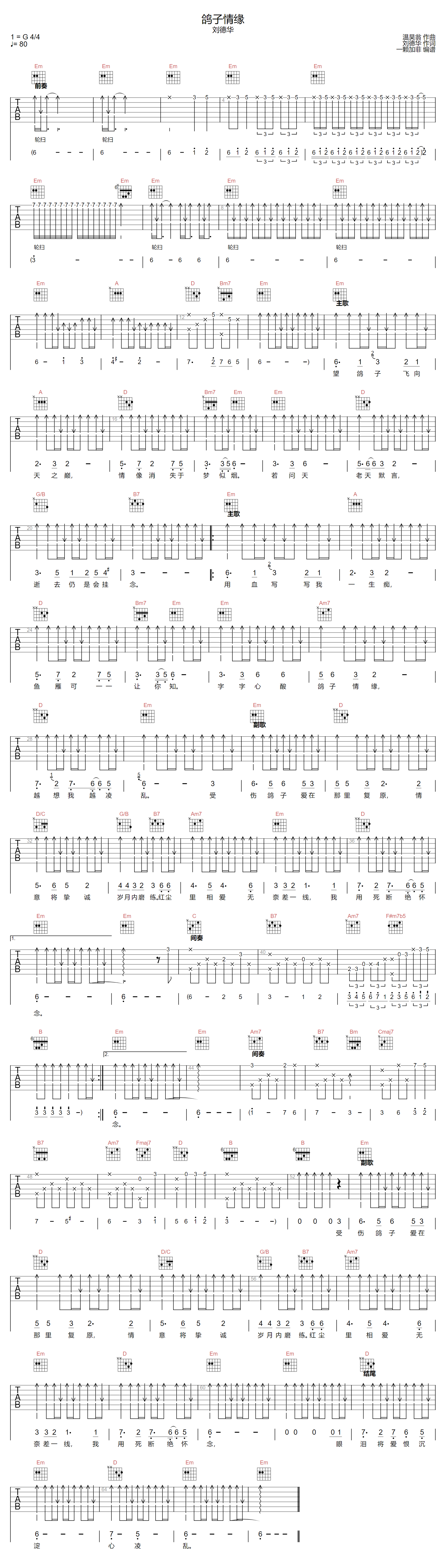 《刘德华《鸽子情缘吉他谱》(G调)》内容来自于互联网,不能保证内容的准确性与完整性,仅供学习交流欣赏,请勿用于其它用途,内容版权归原作者及来源网站所有,如有侵犯到您的权益请来信告知,我们将及时删除。