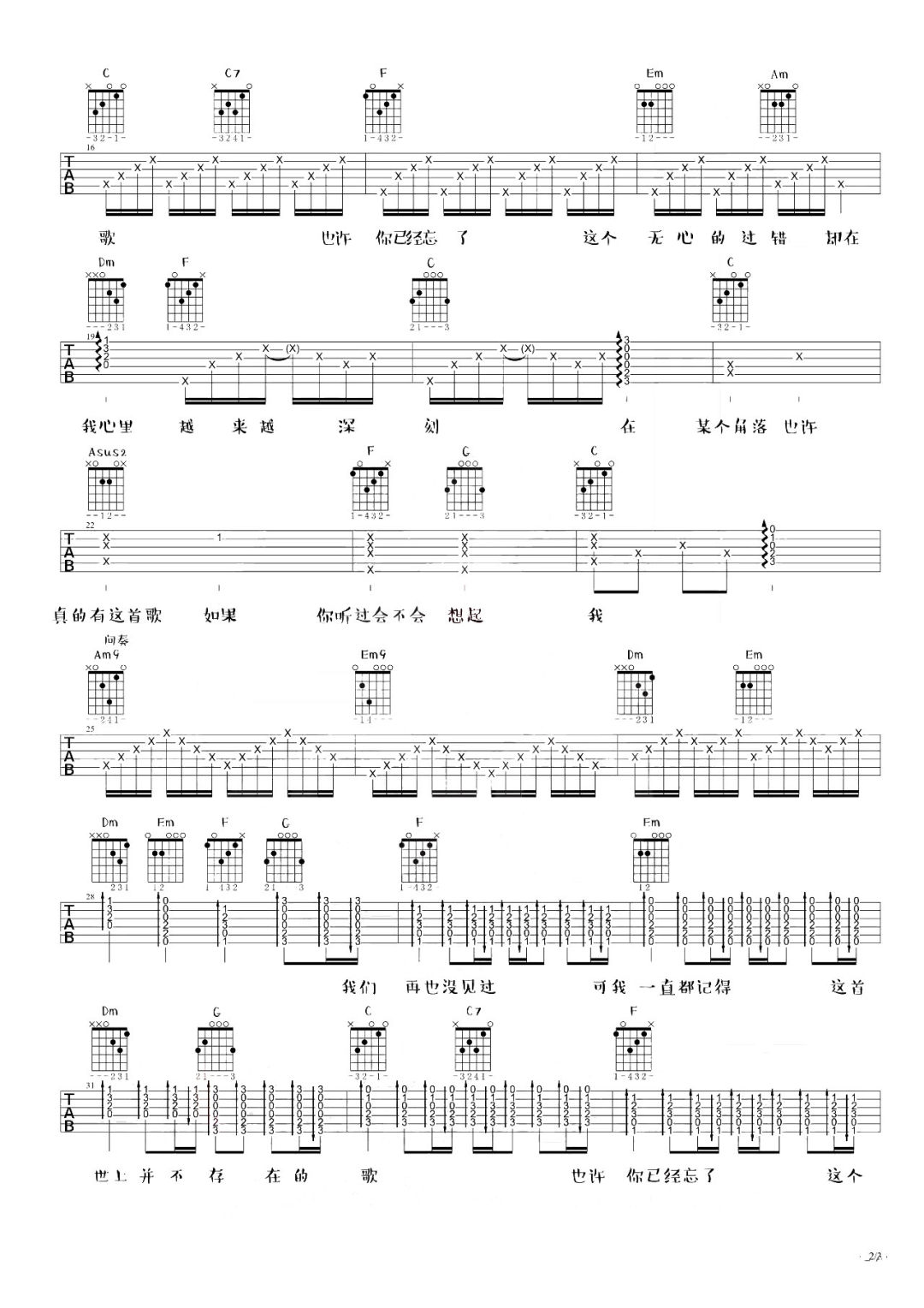 《赵英俊《世界上不存在的歌吉他谱》(A调)》内容来自于互联网,不能保证内容的准确性与完整性,仅供学习交流欣赏,请勿用于其它用途,内容版权归原作者及来源网站所有,如有侵犯到您的权益请来信告知,我们将及时删除。