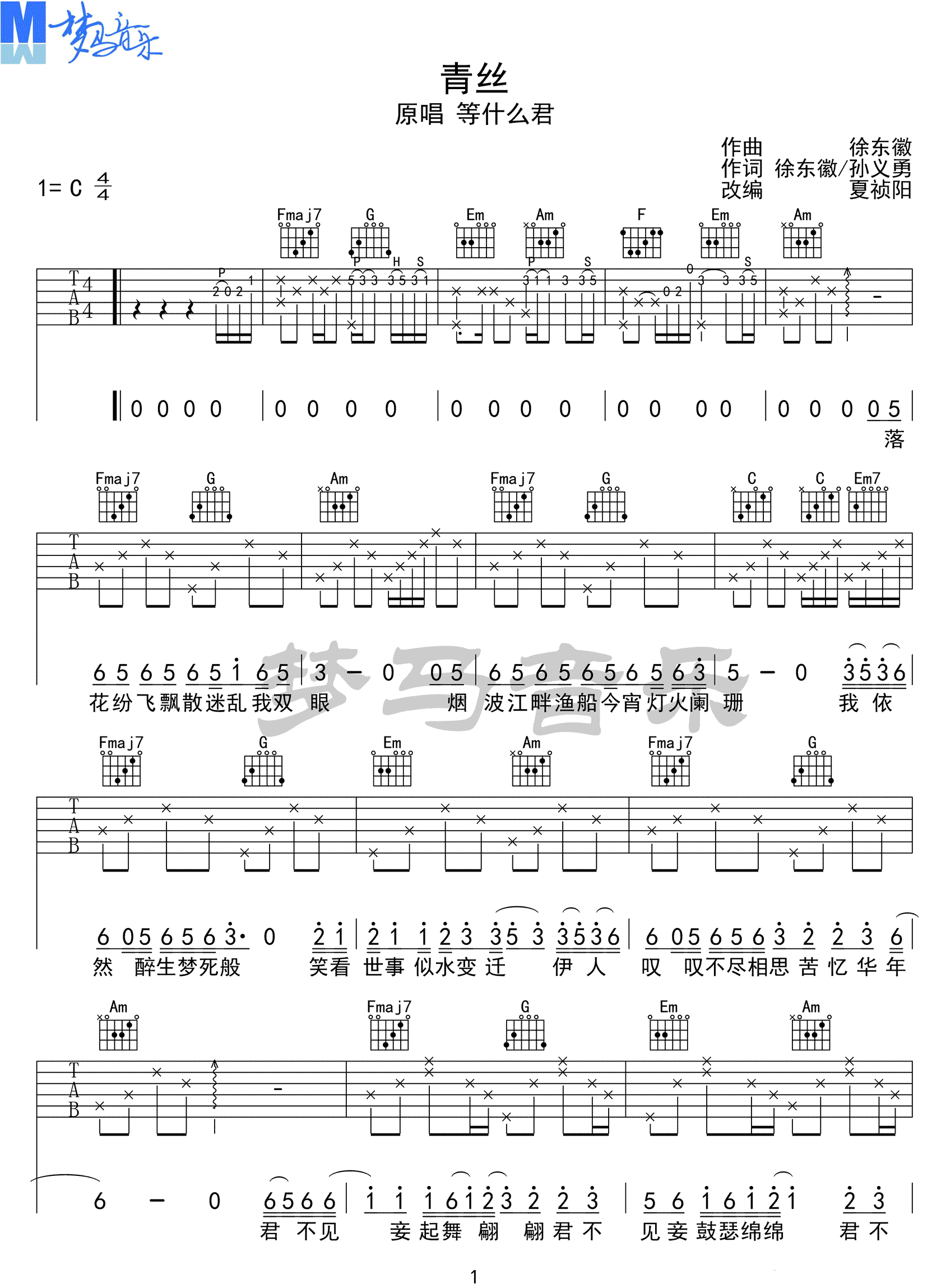 本文标题 《等什么君《青丝吉他谱》(C调)》,网址:https://www.21qupu.com/guitar/63876.html