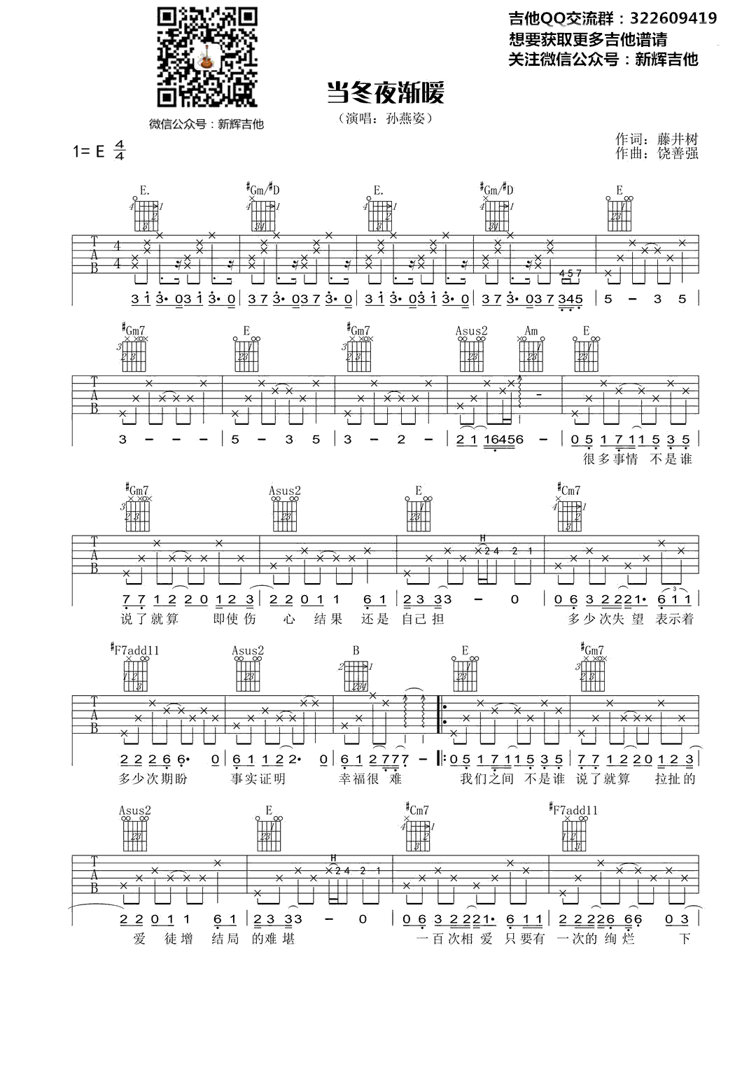 《孙燕姿《当冬夜渐暖吉他谱》(G调)》内容来自于互联网,不能保证内容的准确性与完整性,仅供学习交流欣赏,请勿用于其它用途,内容版权归原作者及来源网站所有,如有侵犯到您的权益请来信告知,我们将及时删除。