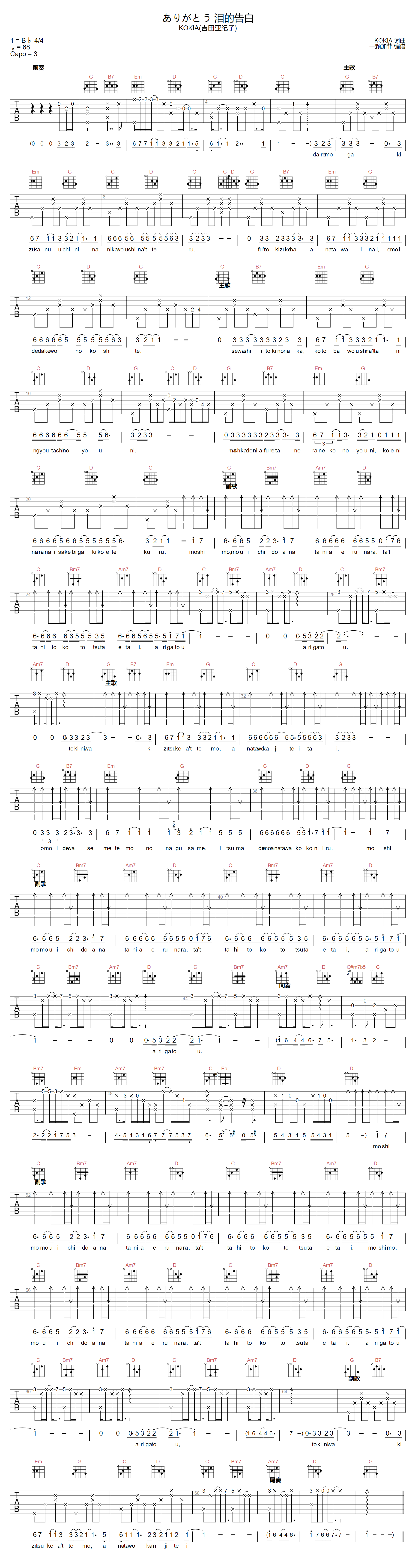 KOKIA《泪的告白吉他谱》(G调)