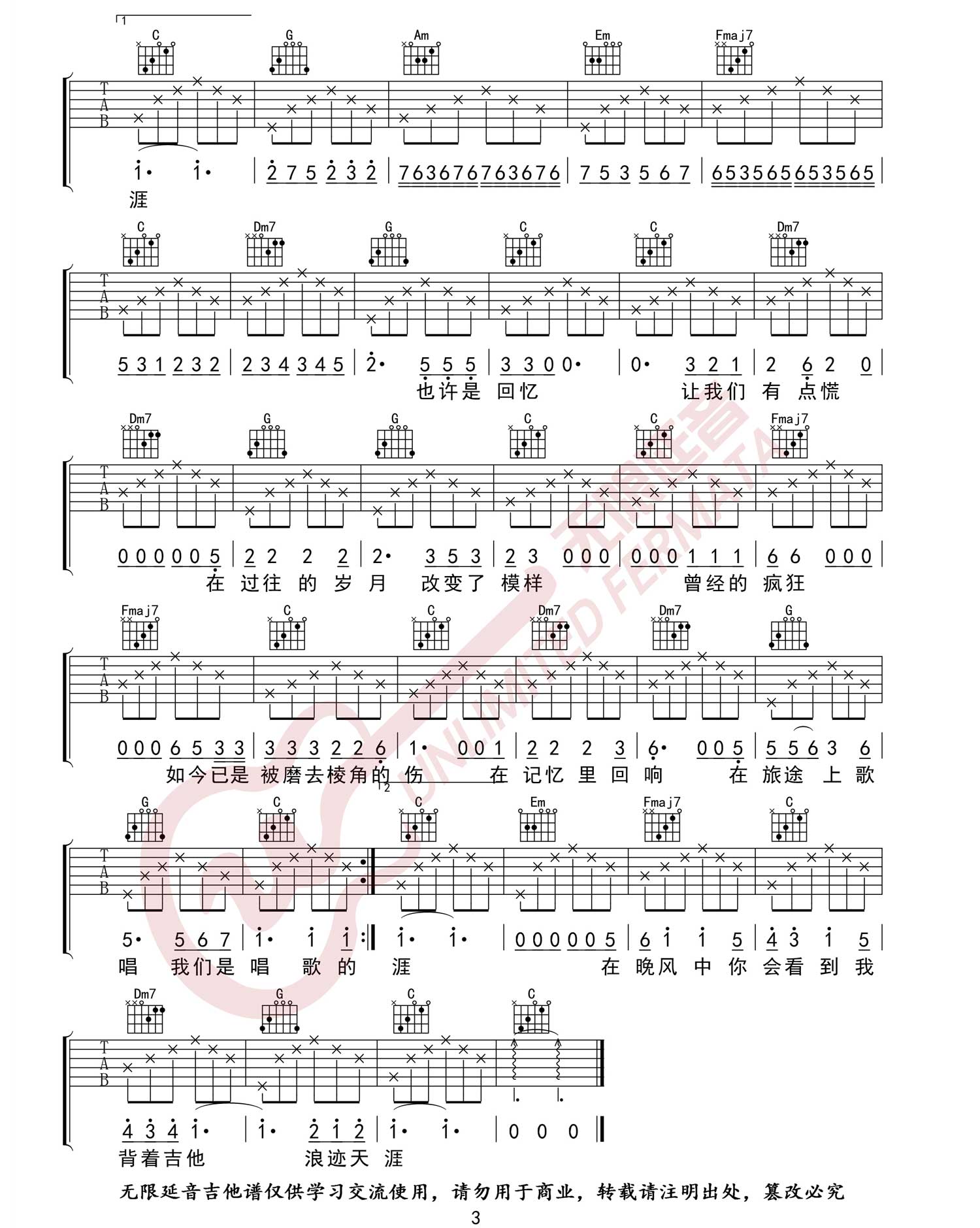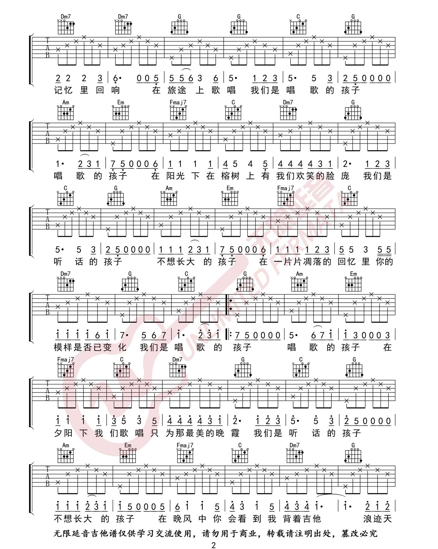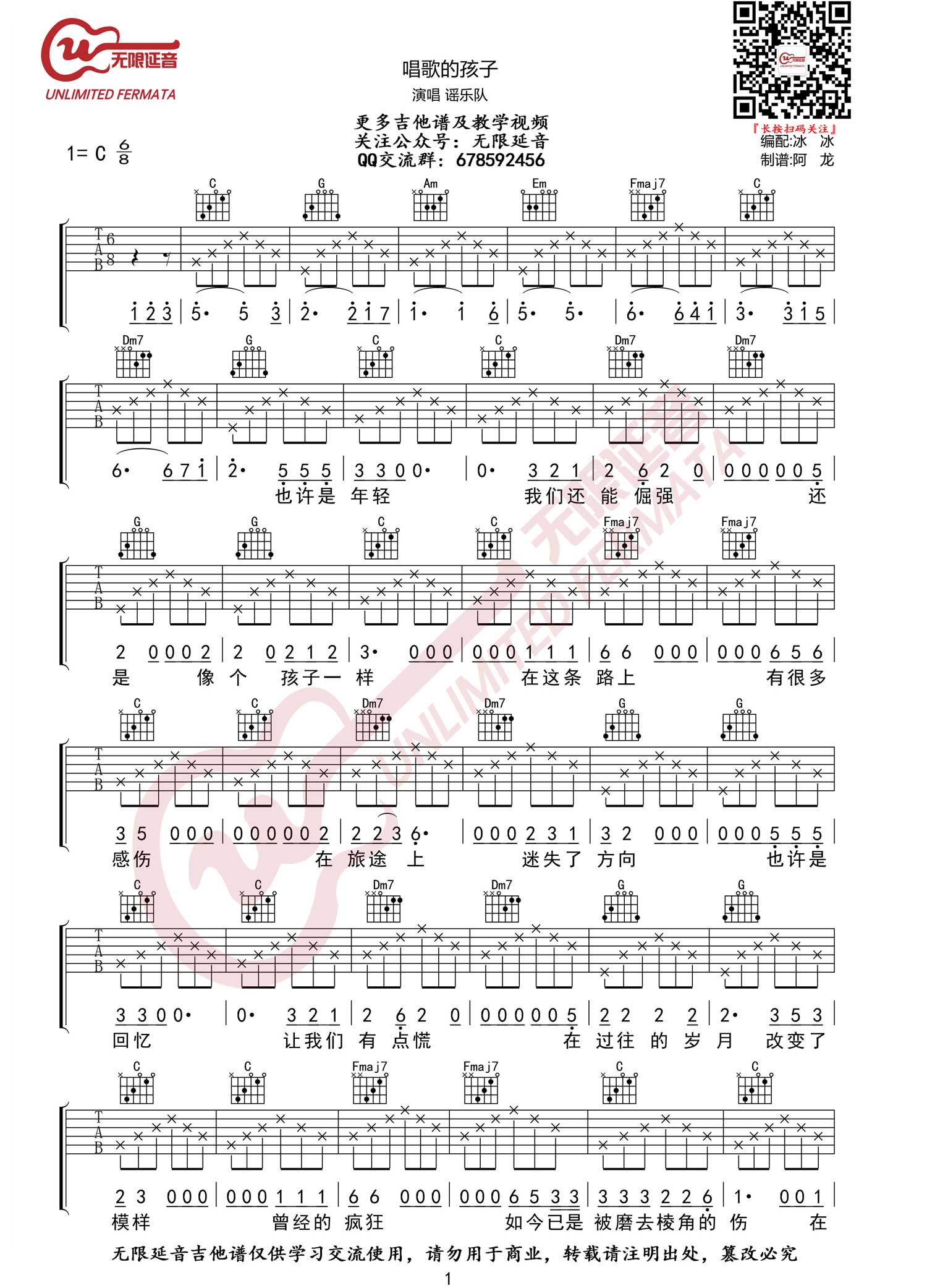 《谣乐队《唱歌的孩子吉他谱》(C调)》内容来自于互联网,不能保证内容的准确性与完整性,仅供学习交流欣赏,请勿用于其它用途,内容版权归原作者及来源网站所有,如有侵犯到您的权益请来信告知,我们将及时删除。