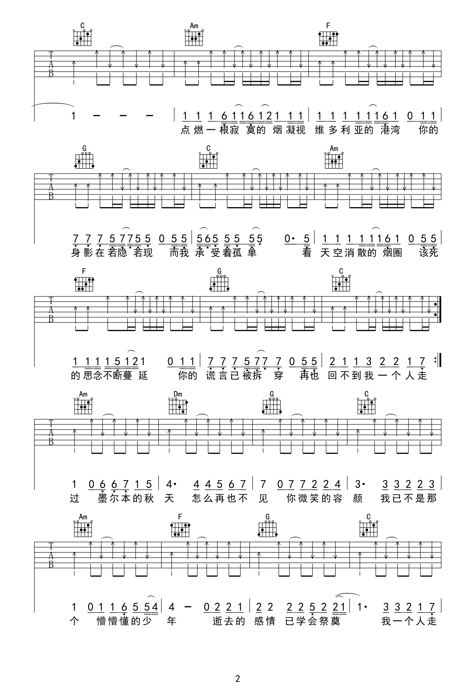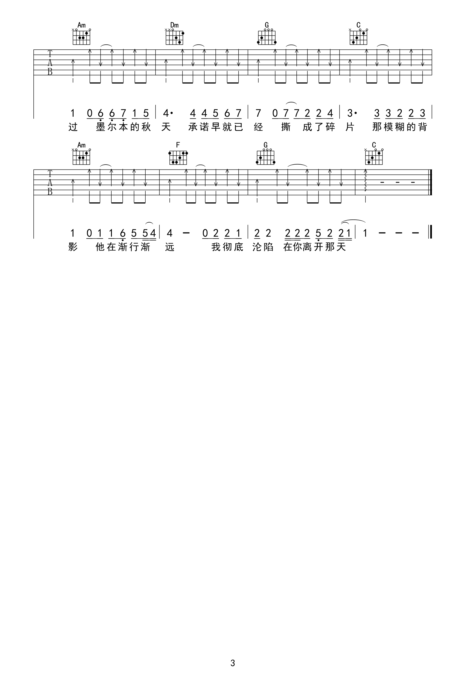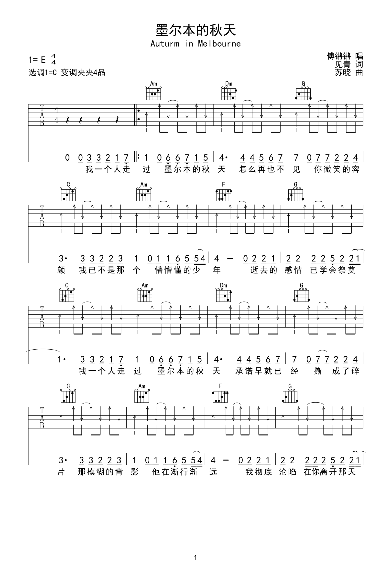 《傅锵锵/王优秀《墨尔本的秋天吉他谱》(C调)》内容来自于互联网,不能保证内容的准确性与完整性,仅供学习交流欣赏,请勿用于其它用途,内容版权归原作者及来源网站所有,如有侵犯到您的权益请来信告知,我们将及时删除。