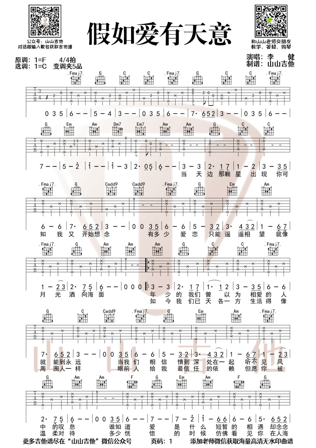 本文标题 《李健《假如爱有天意吉他谱》(G调)》,网址:https://www.21qupu.com/guitar/63894.html