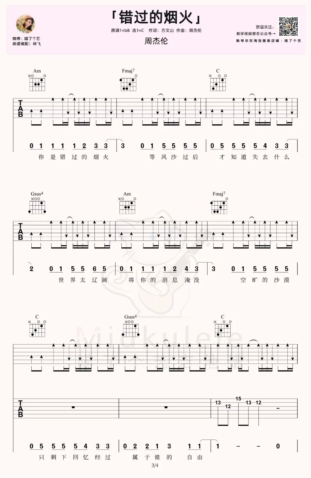《周杰伦《错过的烟火吉他谱》(G调)》内容来自于互联网,不能保证内容的准确性与完整性,仅供学习交流欣赏,请勿用于其它用途,内容版权归原作者及来源网站所有,如有侵犯到您的权益请来信告知,我们将及时删除。