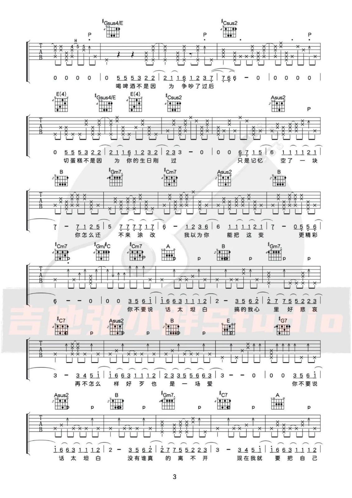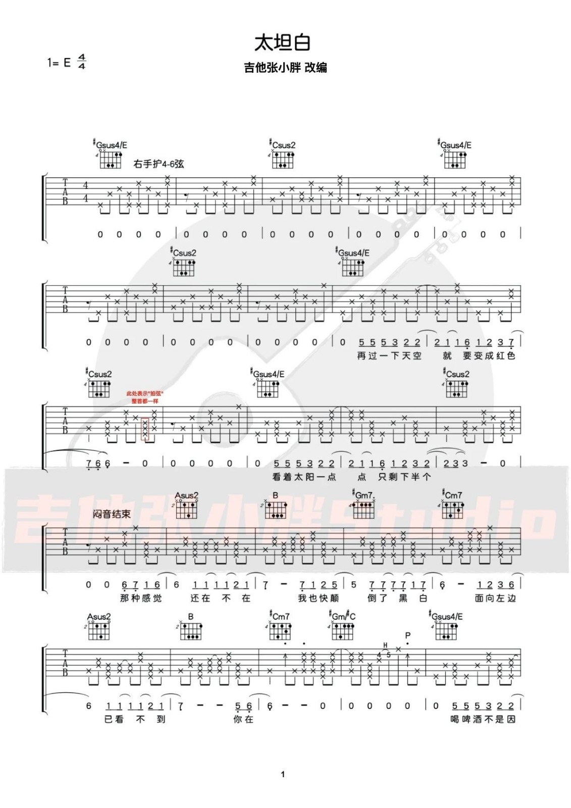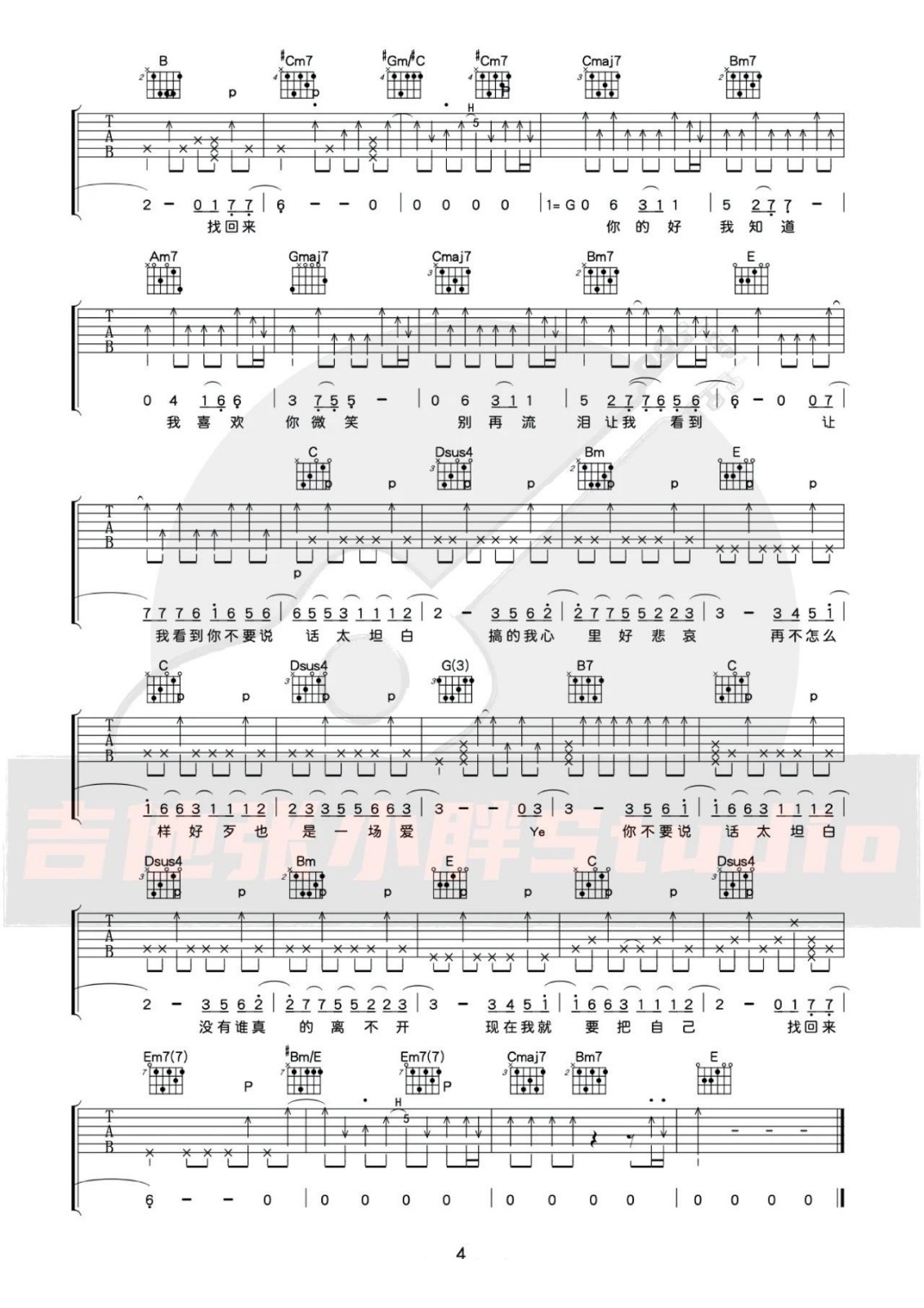 《李荣浩《太坦白吉他谱》(C调)》内容来自于互联网,不能保证内容的准确性与完整性,仅供学习交流欣赏,请勿用于其它用途,内容版权归原作者及来源网站所有,如有侵犯到您的权益请来信告知,我们将及时删除。