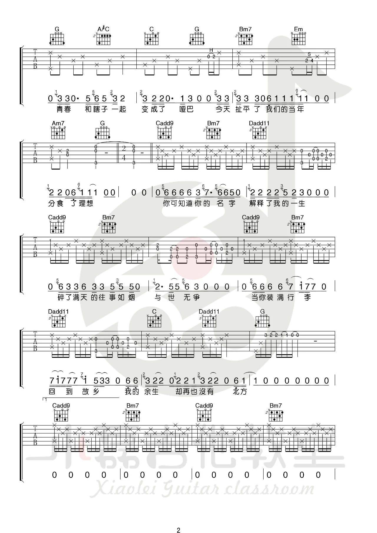 《宋冬野《关忆北吉他谱》(C调)》内容来自于互联网,不能保证内容的准确性与完整性,仅供学习交流欣赏,请勿用于其它用途,内容版权归原作者及来源网站所有,如有侵犯到您的权益请来信告知,我们将及时删除。