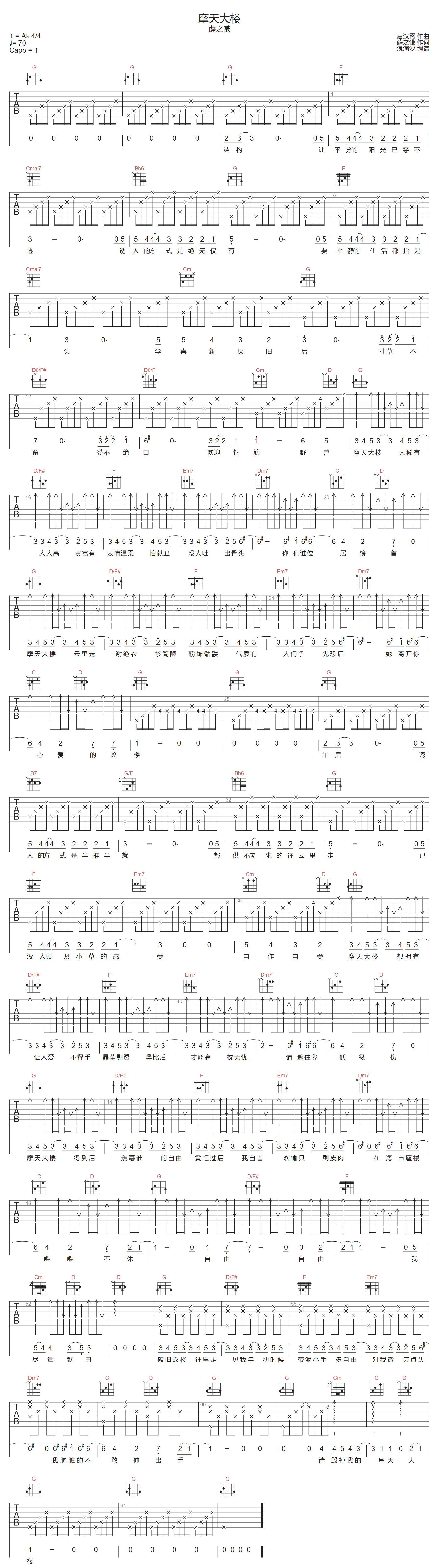 《薛之谦《摩天大楼吉他谱》(E调)》内容来自于互联网,不能保证内容的准确性与完整性,仅供学习交流欣赏,请勿用于其它用途,内容版权归原作者及来源网站所有,如有侵犯到您的权益请来信告知,我们将及时删除。