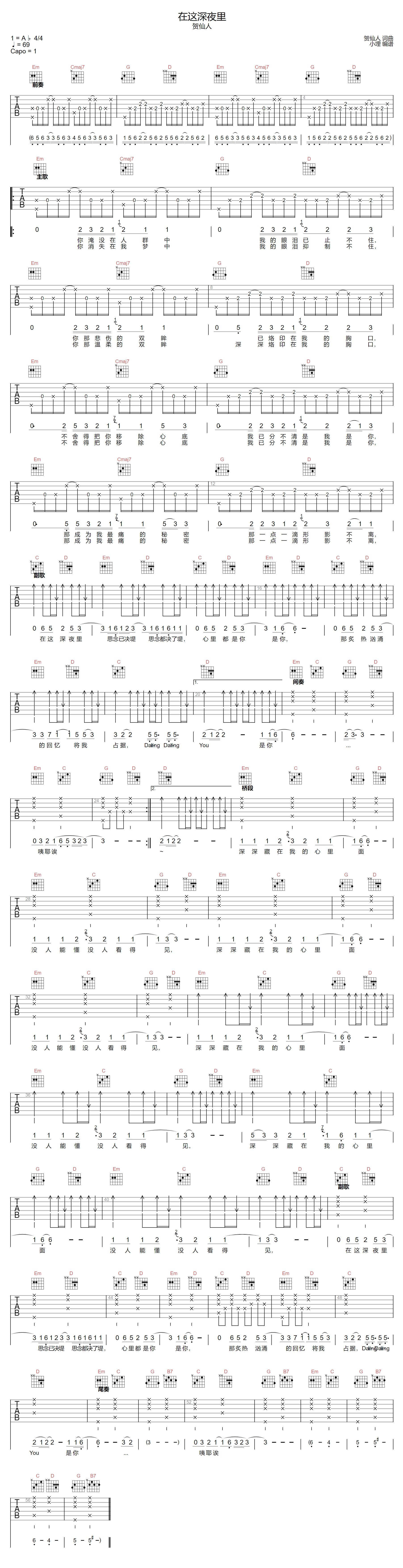 《贺仙人《在这深夜里吉他谱》(C调)》内容来自于互联网,不能保证内容的准确性与完整性,仅供学习交流欣赏,请勿用于其它用途,内容版权归原作者及来源网站所有,如有侵犯到您的权益请来信告知,我们将及时删除。