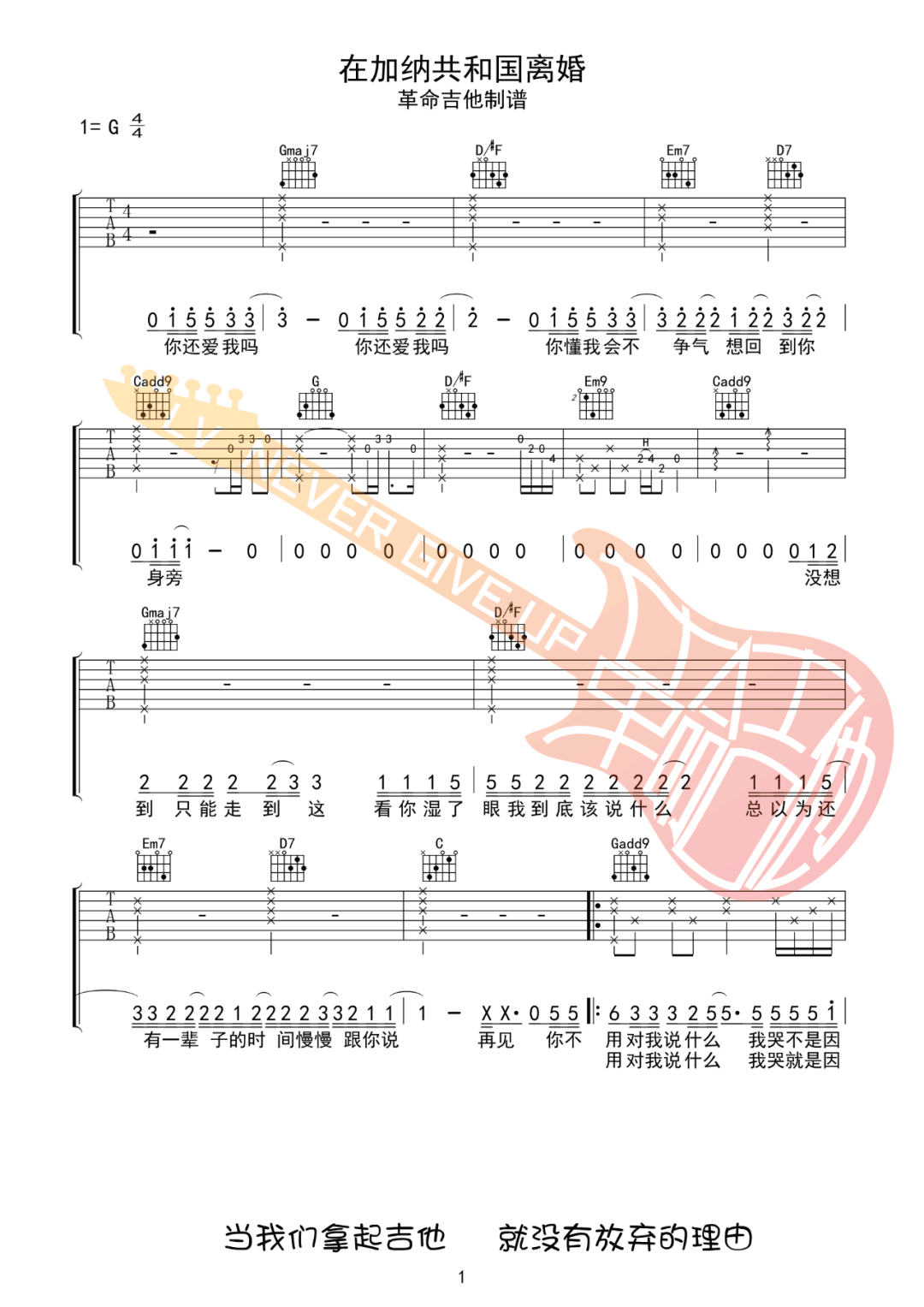 《菲道尔《在加纳共和国离婚吉他谱》(C调)》内容来自于互联网,不能保证内容的准确性与完整性,仅供学习交流欣赏,请勿用于其它用途,内容版权归原作者及来源网站所有,如有侵犯到您的权益请来信告知,我们将及时删除。