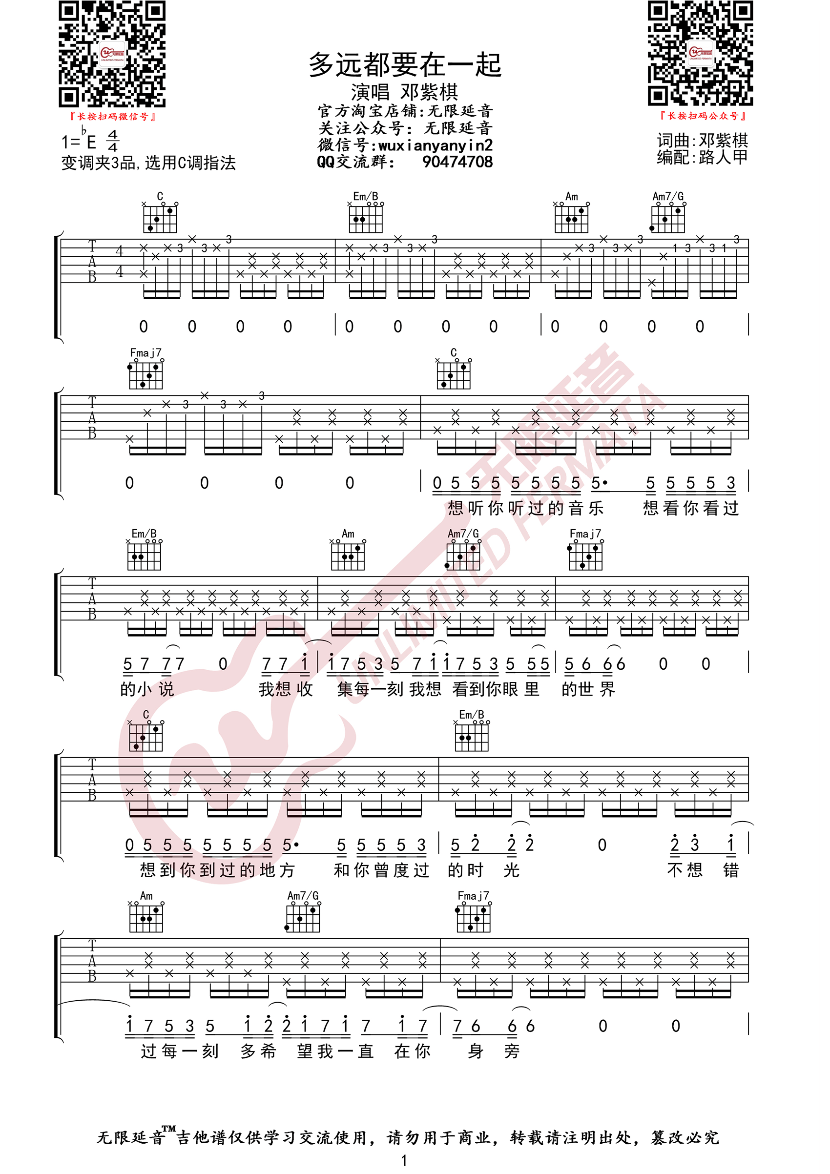 《邓紫棋《多远都要在一起吉他谱》(C调)》内容来自于互联网,不能保证内容的准确性与完整性,仅供学习交流欣赏,请勿用于其它用途,内容版权归原作者及来源网站所有,如有侵犯到您的权益请来信告知,我们将及时删除。