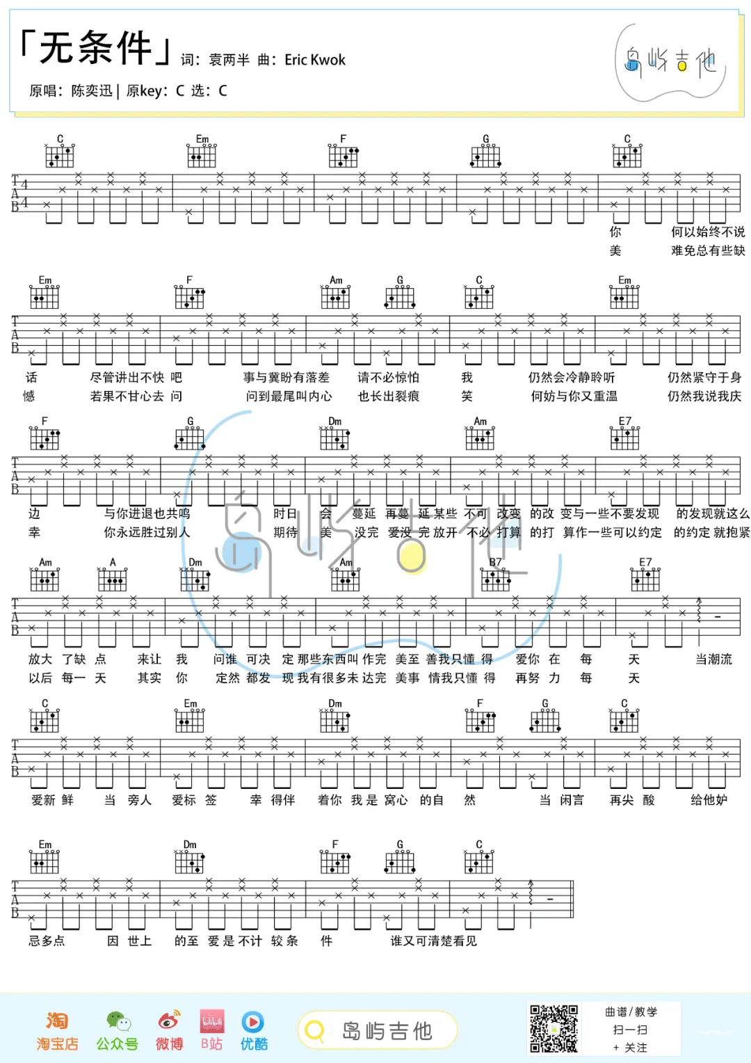 《陈奕迅《无条件吉他谱》(C调)》内容来自于互联网,不能保证内容的准确性与完整性,仅供学习交流欣赏,请勿用于其它用途,内容版权归原作者及来源网站所有,如有侵犯到您的权益请来信告知,我们将及时删除。