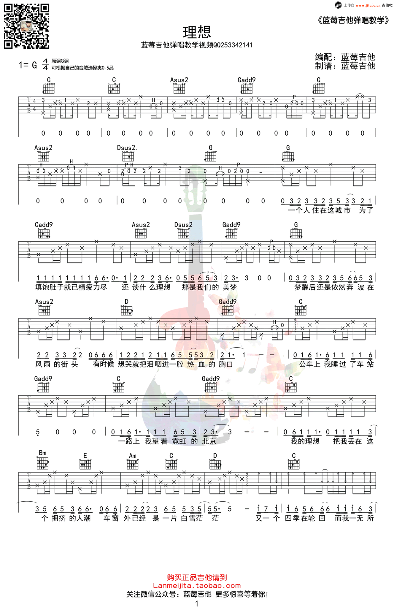 《赵雷《理想吉他谱》(G调)》内容来自于互联网,不能保证内容的准确性与完整性,仅供学习交流欣赏,请勿用于其它用途,内容版权归原作者及来源网站所有,如有侵犯到您的权益请来信告知,我们将及时删除。