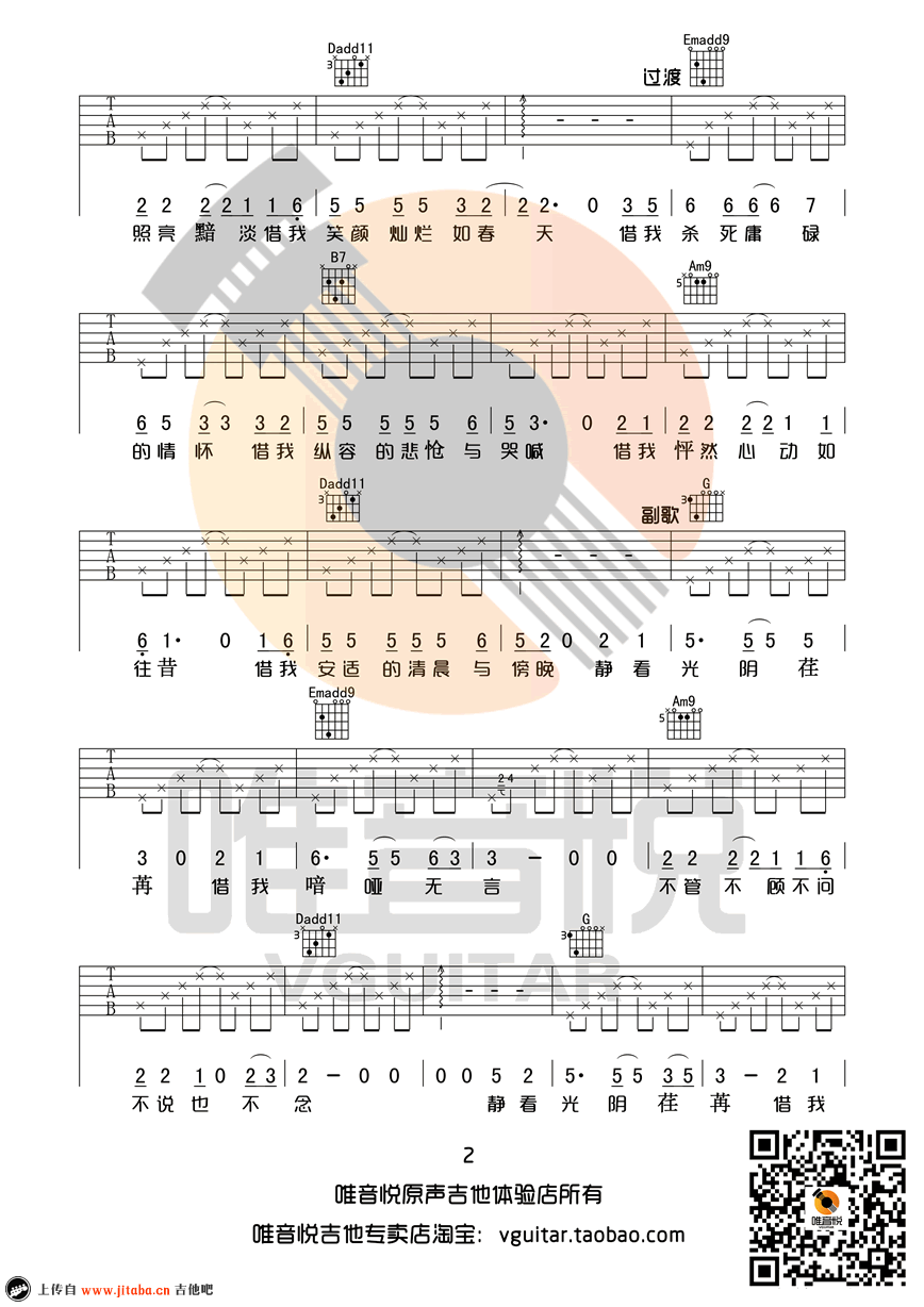 《谢春花《借我吉他谱》(G调)》内容来自于互联网,不能保证内容的准确性与完整性,仅供学习交流欣赏,请勿用于其它用途,内容版权归原作者及来源网站所有,如有侵犯到您的权益请来信告知,我们将及时删除。