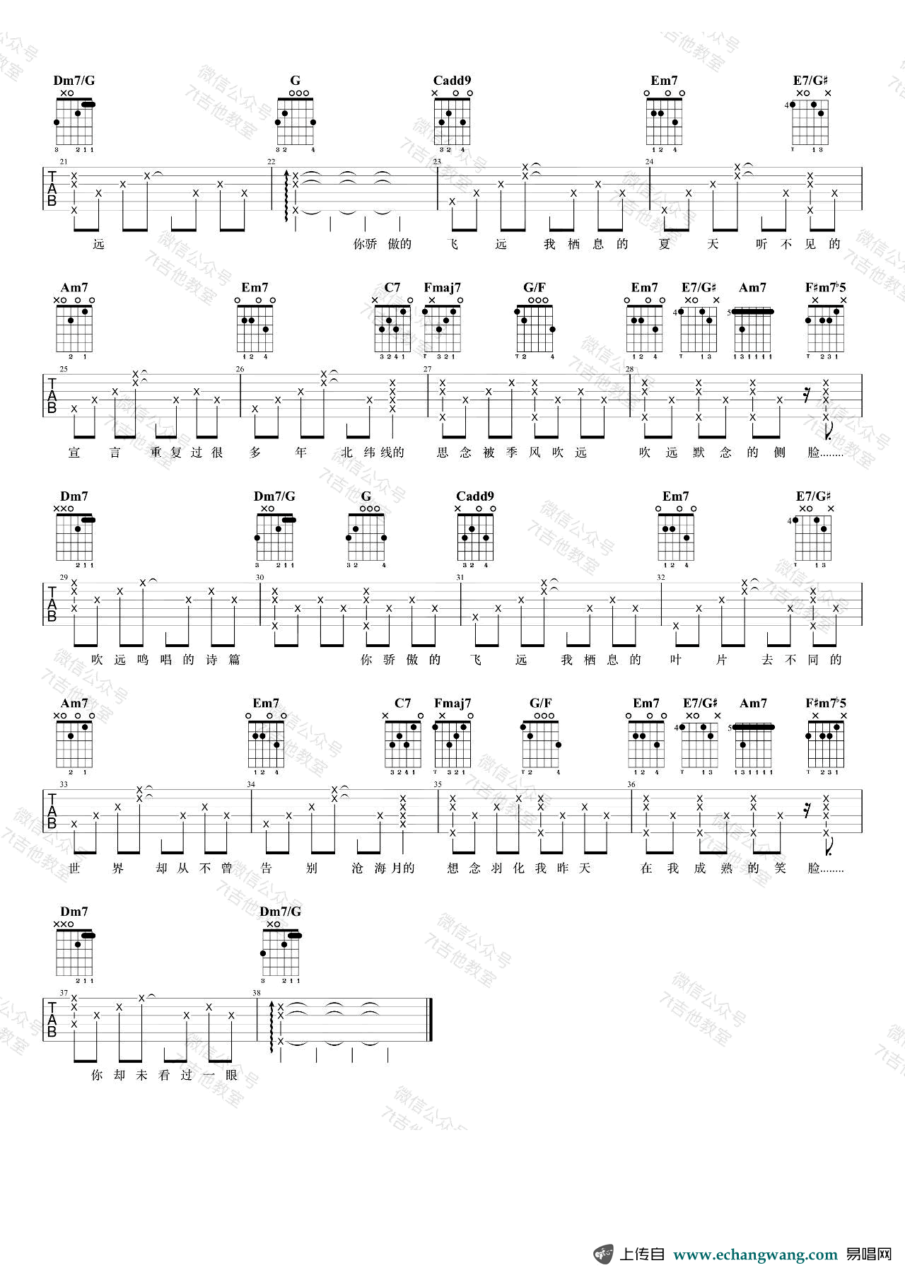 《宁静《飞鸟和蝉吉他谱》(C调)》内容来自于互联网,不能保证内容的准确性与完整性,仅供学习交流欣赏,请勿用于其它用途,内容版权归原作者及来源网站所有,如有侵犯到您的权益请来信告知,我们将及时删除。