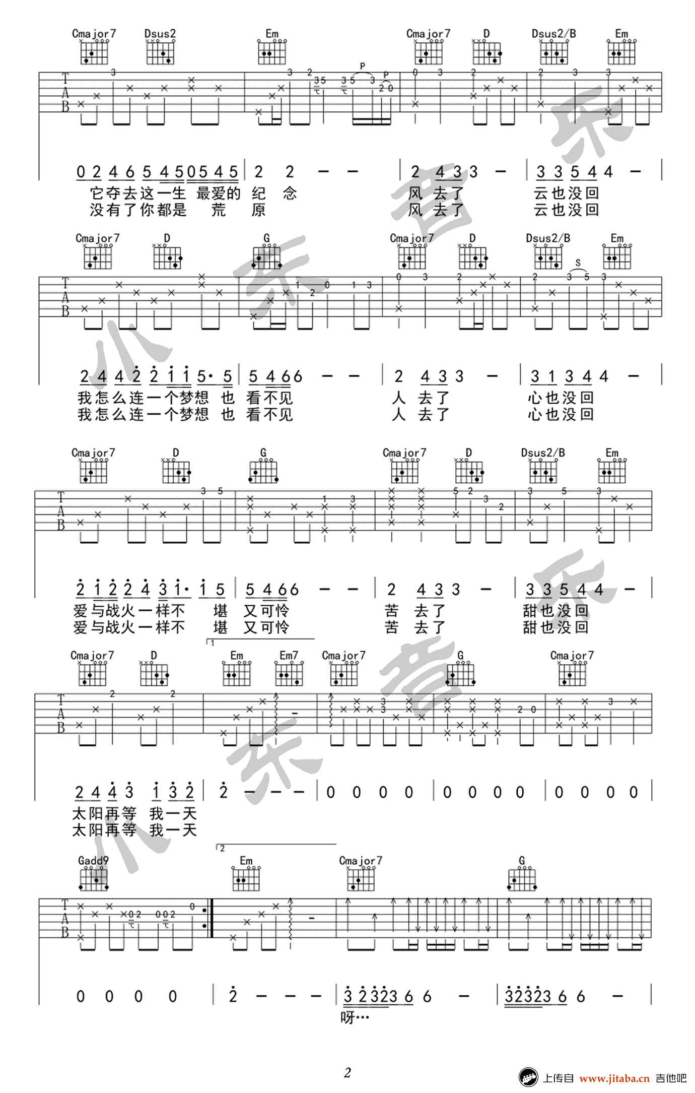 《《风去云不回吉他谱》》内容来自于互联网,不能保证内容的准确性与完整性,仅供学习交流欣赏,请勿用于其它用途,内容版权归原作者及来源网站所有,如有侵犯到您的权益请来信告知,我们将及时删除。