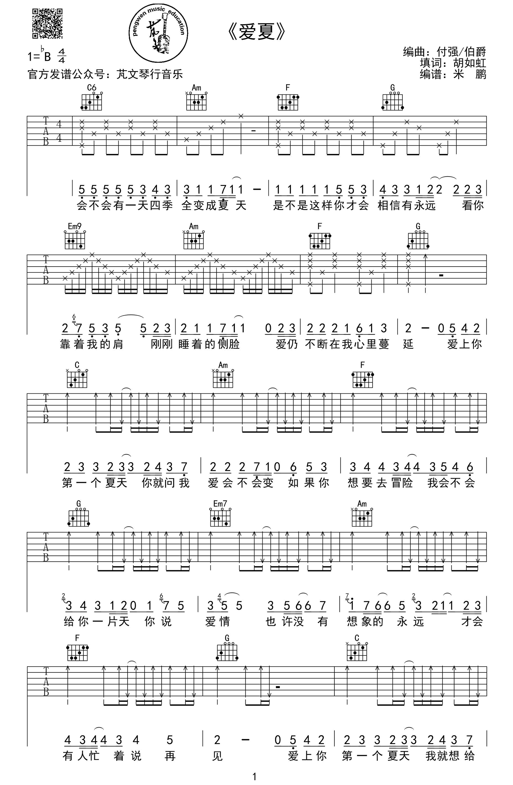 《胡夏《爱夏吉他谱》》内容来自于互联网,不能保证内容的准确性与完整性,仅供学习交流欣赏,请勿用于其它用途,内容版权归原作者及来源网站所有,如有侵犯到您的权益请来信告知,我们将及时删除。