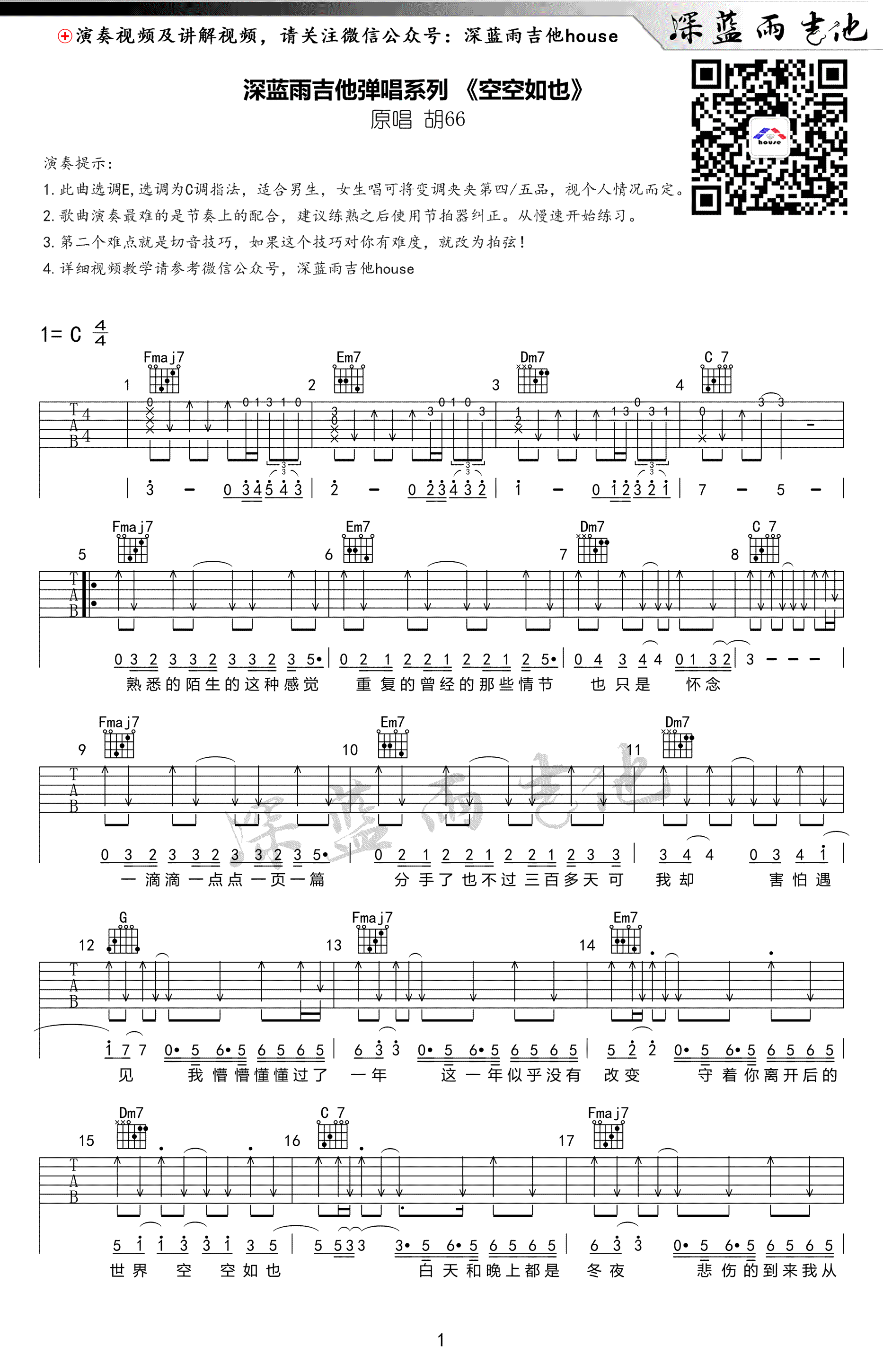 《胡66《空空如也吉他谱》(C调)》内容来自于互联网,不能保证内容的准确性与完整性,仅供学习交流欣赏,请勿用于其它用途,内容版权归原作者及来源网站所有,如有侵犯到您的权益请来信告知,我们将及时删除。