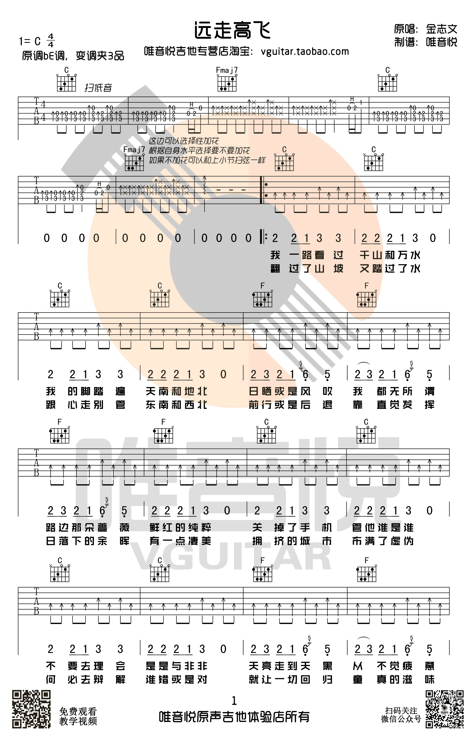《金志文《远走高飞吉他谱》(C调)》内容来自于互联网,不能保证内容的准确性与完整性,仅供学习交流欣赏,请勿用于其它用途,内容版权归原作者及来源网站所有,如有侵犯到您的权益请来信告知,我们将及时删除。