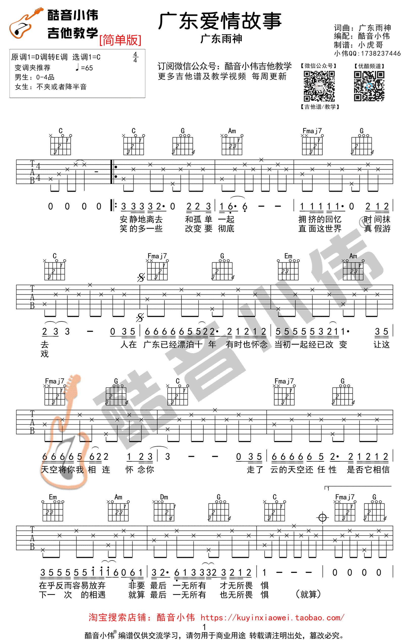 《广东雨神《广东爱情故事吉他谱》(C调)》内容来自于互联网,不能保证内容的准确性与完整性,仅供学习交流欣赏,请勿用于其它用途,内容版权归原作者及来源网站所有,如有侵犯到您的权益请来信告知,我们将及时删除。