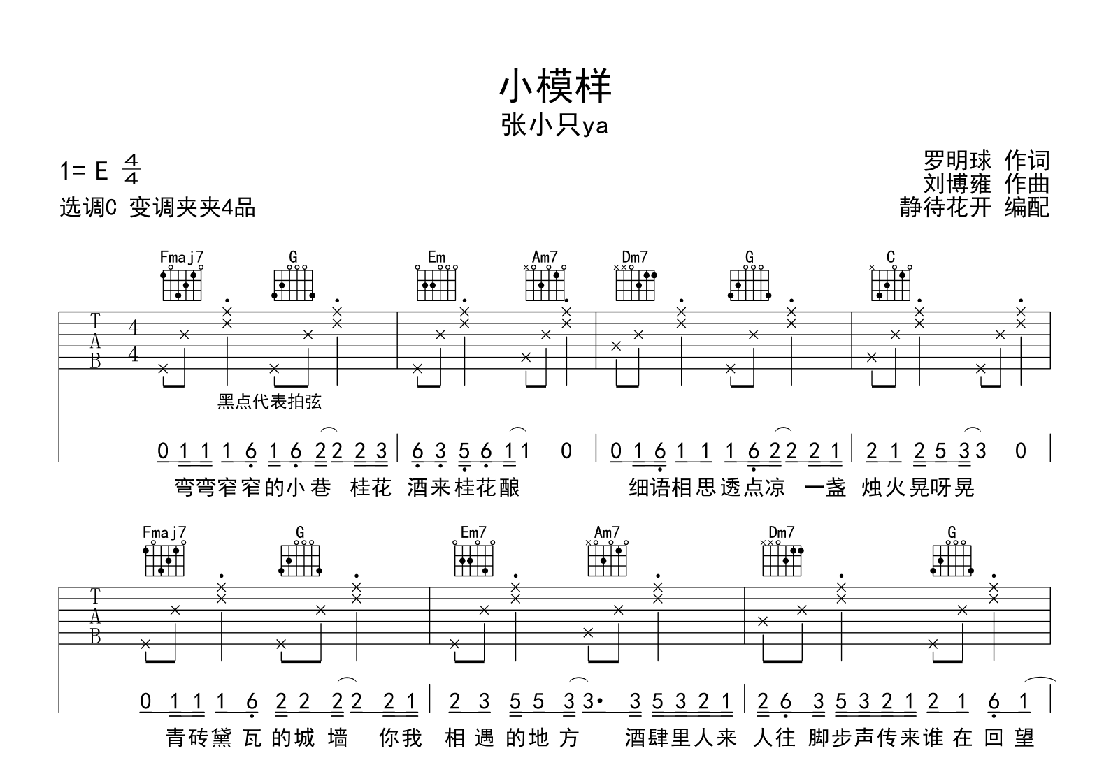 《《小模样吉他谱》(C调)》内容来自于互联网,不能保证内容的准确性与完整性,仅供学习交流欣赏,请勿用于其它用途,内容版权归原作者及来源网站所有,如有侵犯到您的权益请来信告知,我们将及时删除。